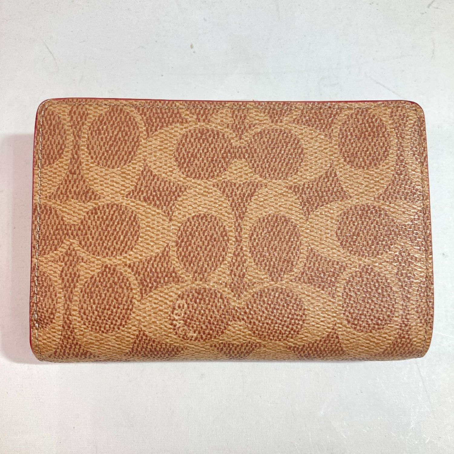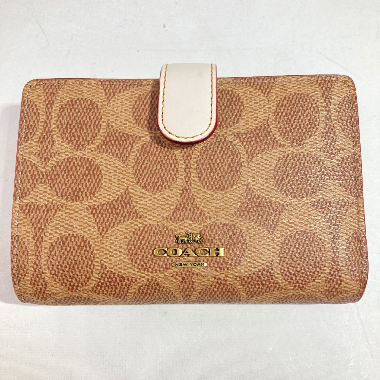 COACH コーチ 二つ折り財布 33034 ベージュ x ホワイト シグネチャー コーナージップ