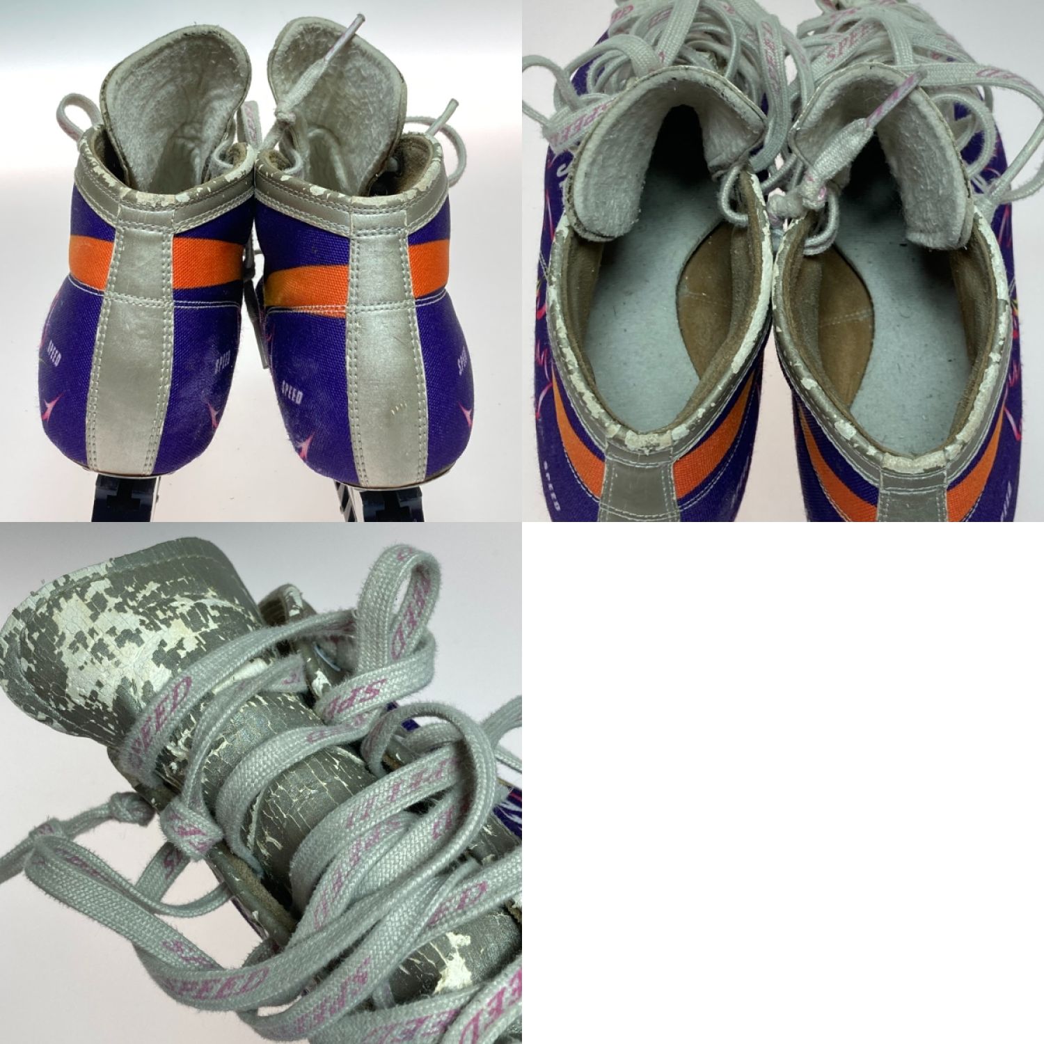 シューズは生地の剥がれ・ひび割れ・傷・汚れが目立ちます。