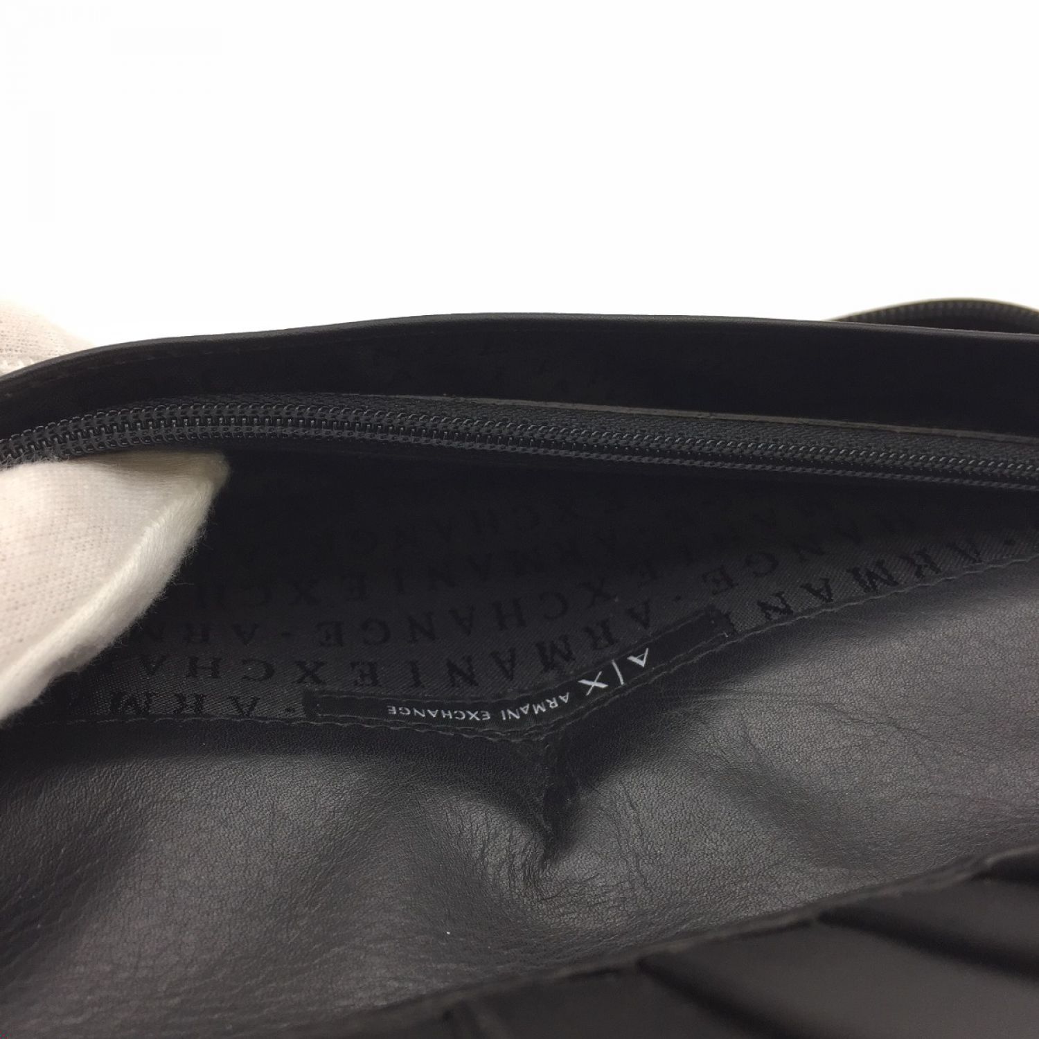 ARMANI EXCHANGE アルマーニエクスチェンジ AX ラウンドロゴファスナー レザー長財布 ブラック 中古品