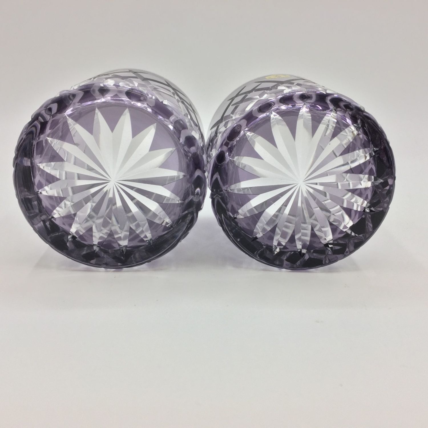 伝統工芸 江戸切子 彩鳳 斜光菱文様 オールド ムラサキ ロックグラス 未使用品 ペア ロックグラス 未使用品
