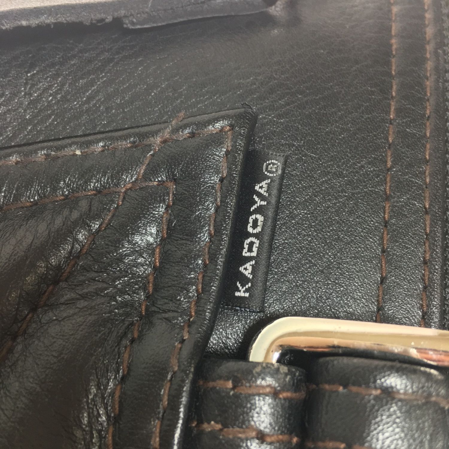 【商品名】中古 KADOYA カドヤ RIDEWADER ライドウエイダー EVO フットウェアダイヤ型ステッチパテッドチャップス牛革レザー サイズ M-L Bランク
