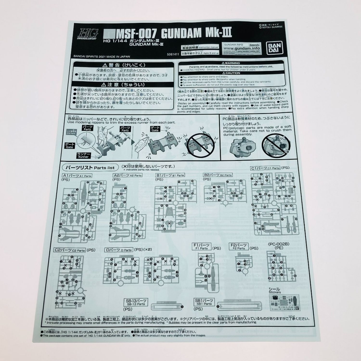 プラモパーツ類は未開封状態でダメージはございません。