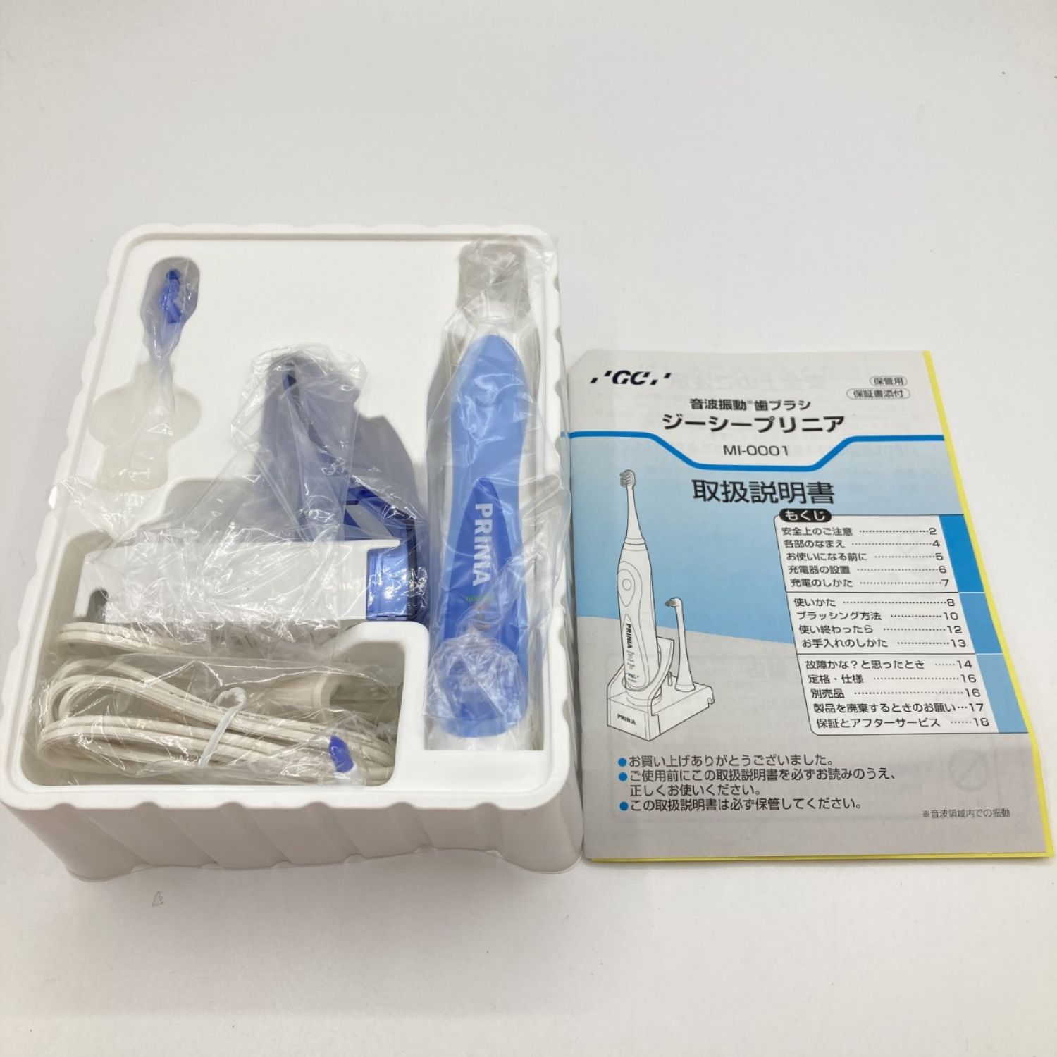 【商品名】中古 GC PRINIA 音波振動歯ブラシ ジーシープリニア MI-0001 カーブフロートブラシ2セット付 Sランク