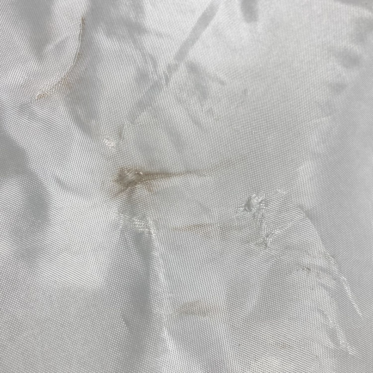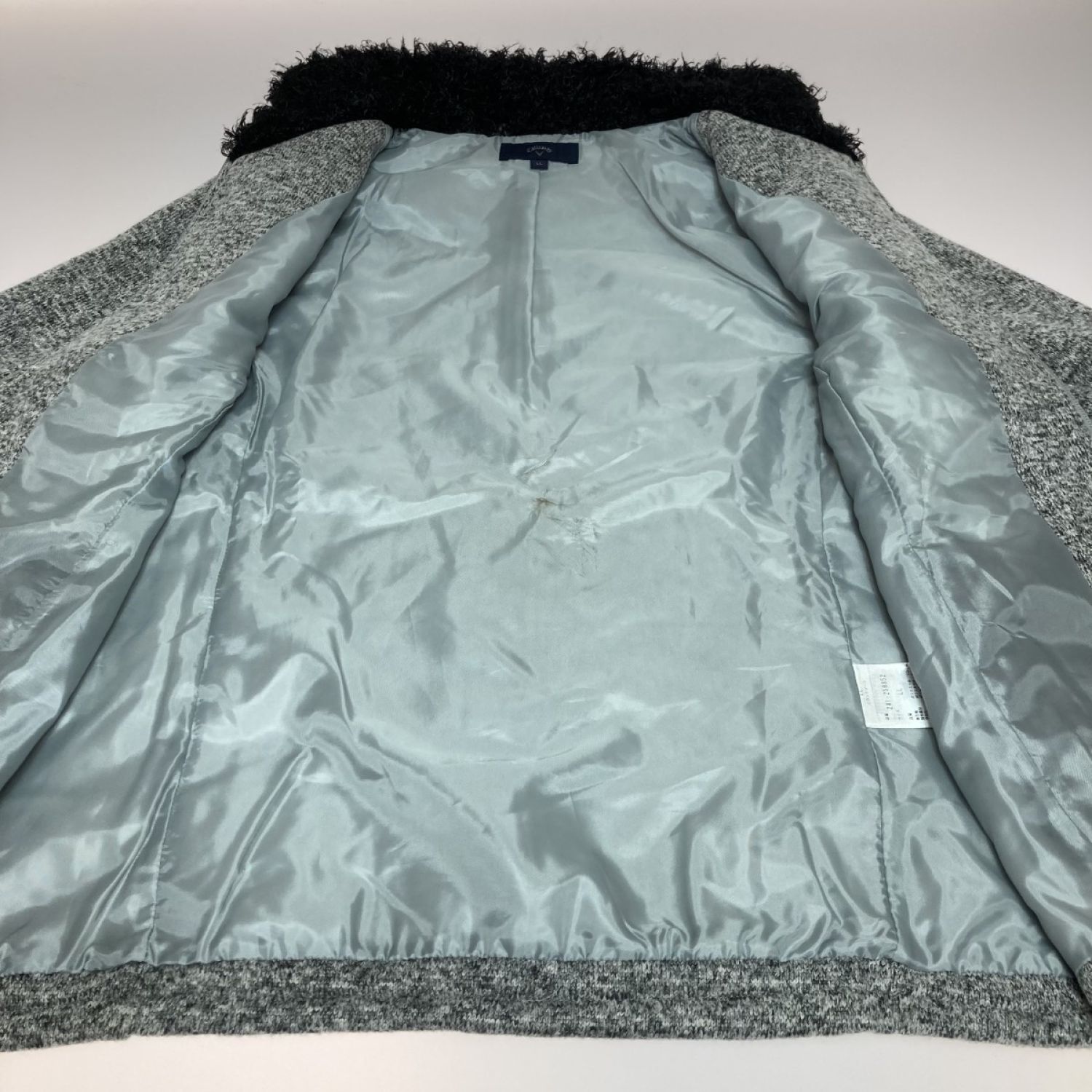 裏地の背中部分に穴開き・汚れのダメージがございます。(画像6枚目)