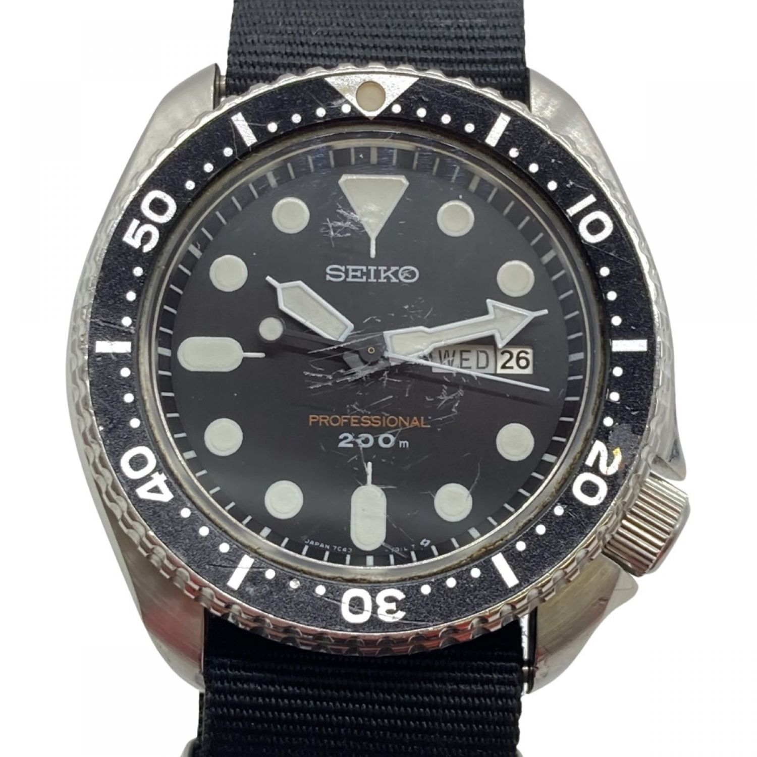 【商品名】中古 SEIKO セイコー ダイバー プロフェッショナル 200m クォーツ 腕時計 7C43-7010 風防キズ有 ベルト社外 本体のみ Cランク