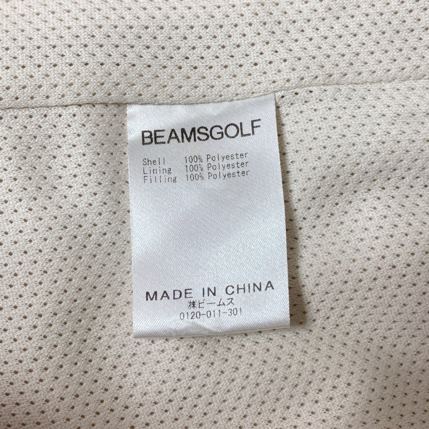 【商品名】中古 BEAMS GOLF ビームスゴルフ 中綿 ノーカラー ブルゾン 中綿ジャケット Sサイズ ベージュ Bランク