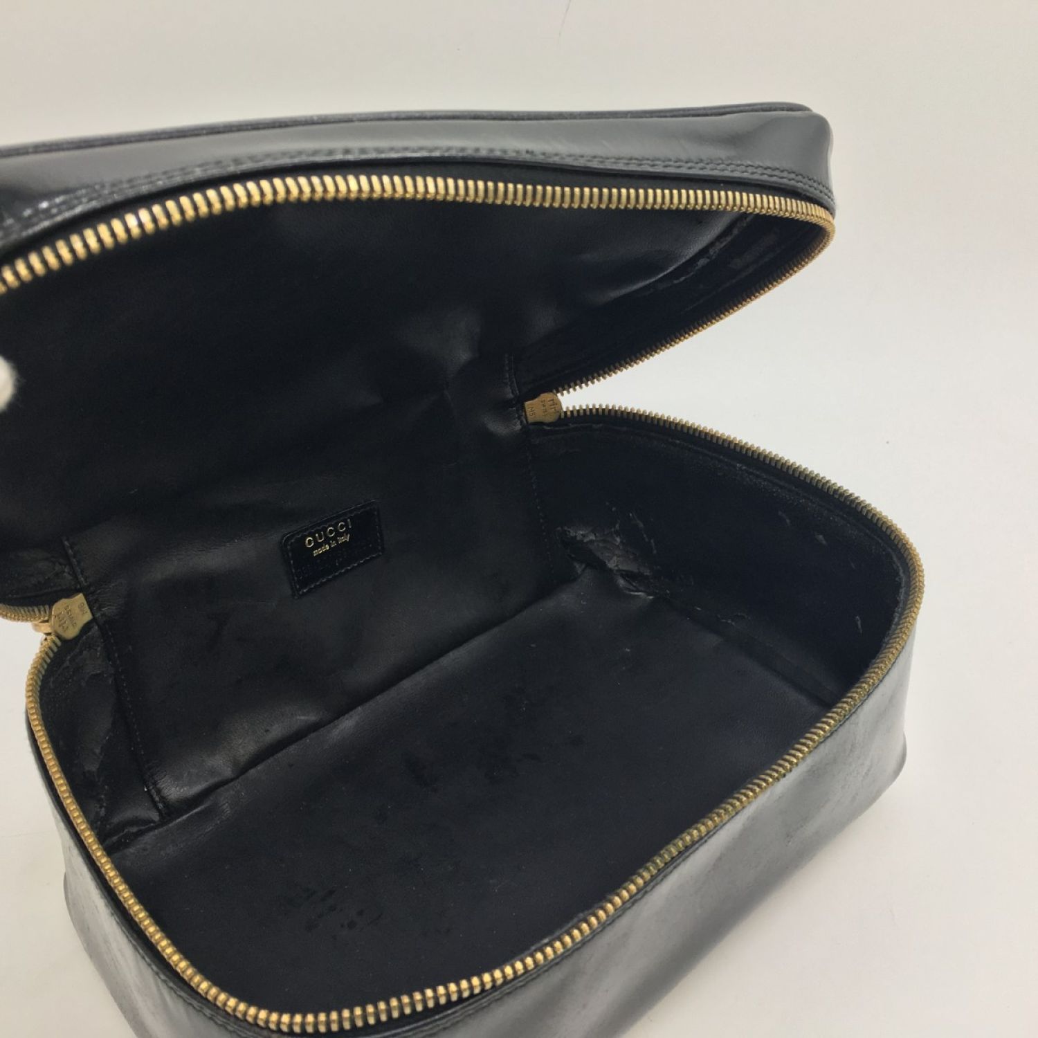 GUCCI グッチ 化粧ポーチ バニティバッグ ポーチ エナメル ブラック バンブー 032・200159・0150 ブラック 内部剥がれ・劣化あり