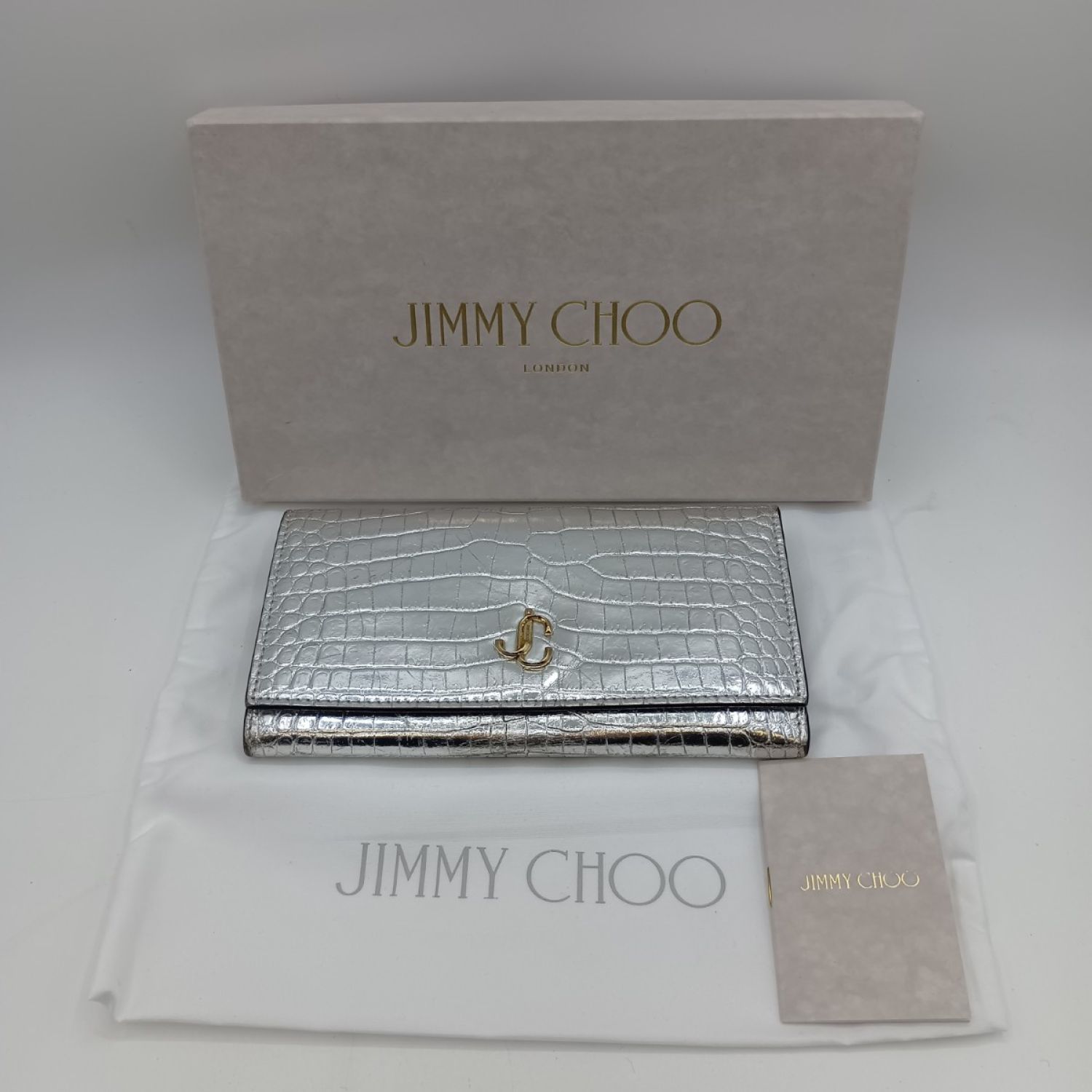 JIMMY CHOO ジミーチュウ マルティナ 長財布 JCロゴ クロコ型押し シルバー