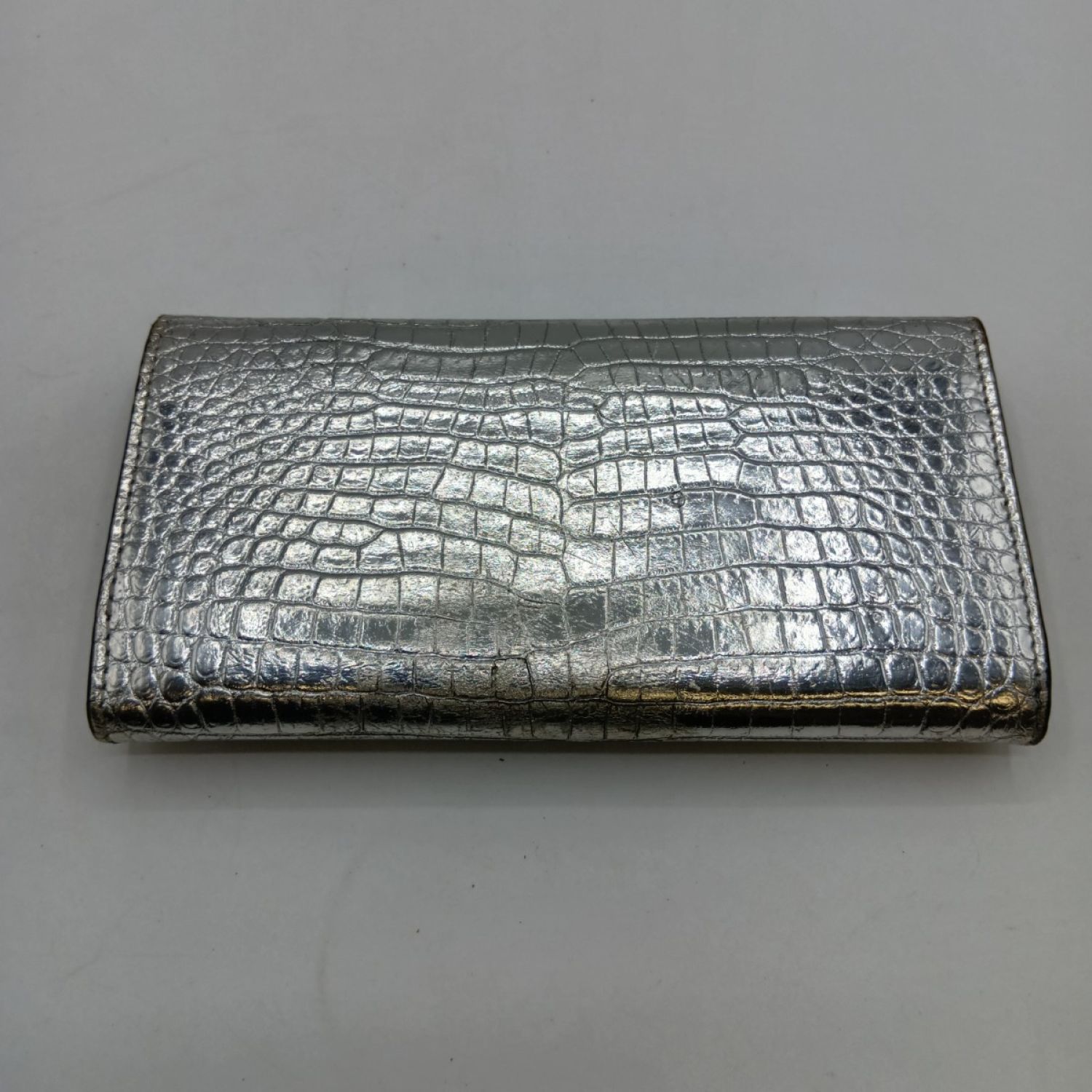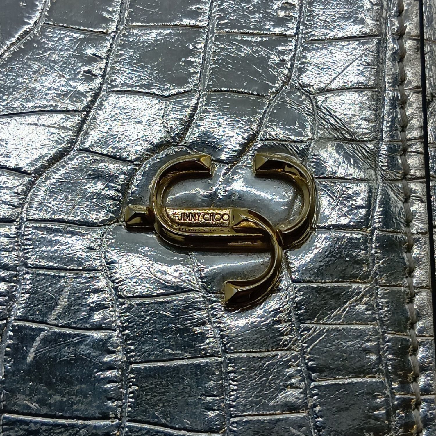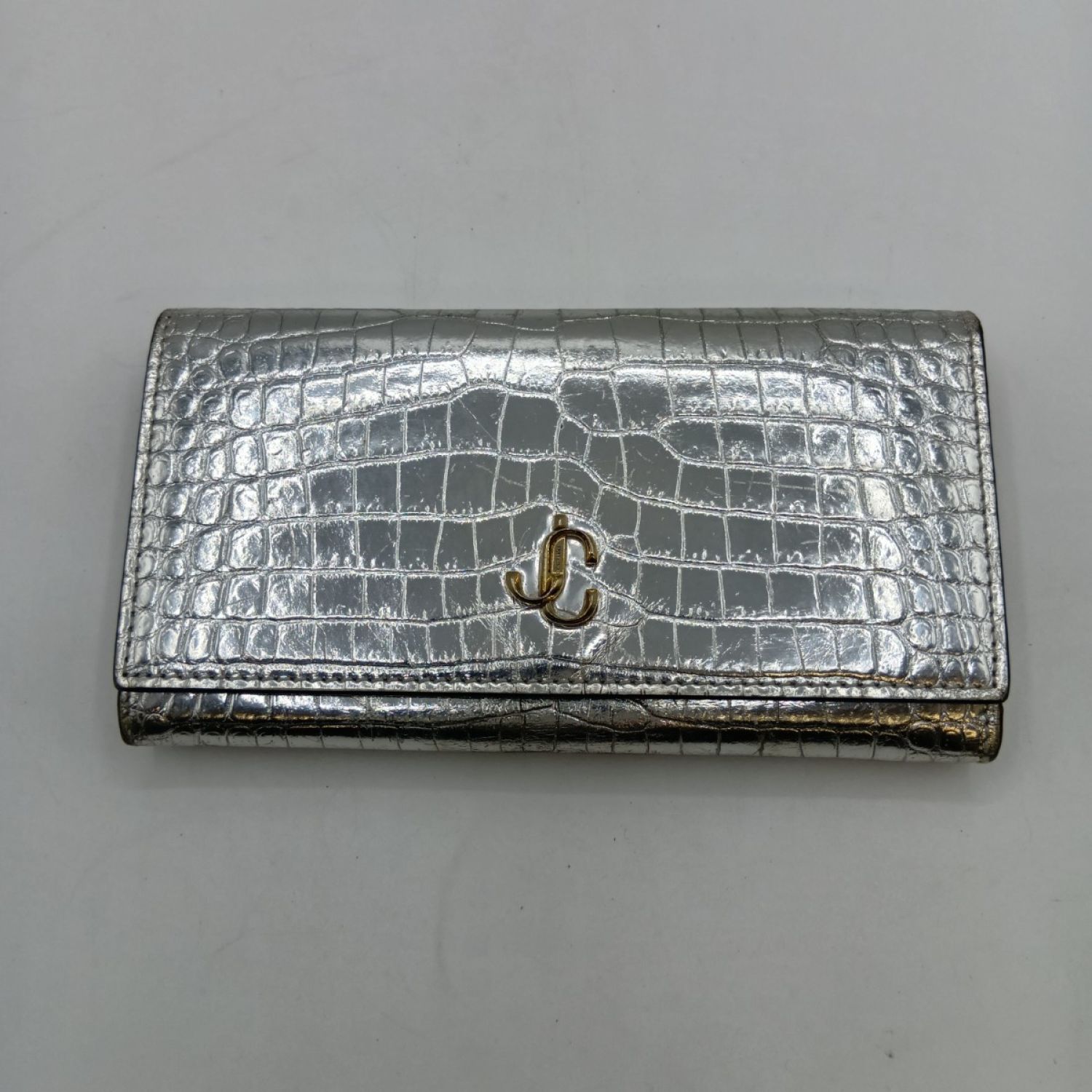 【商品名】中古 JIMMY CHOO ジミーチュウ マルティナ 長財布 JCロゴ クロコ型押し シルバー Cランク