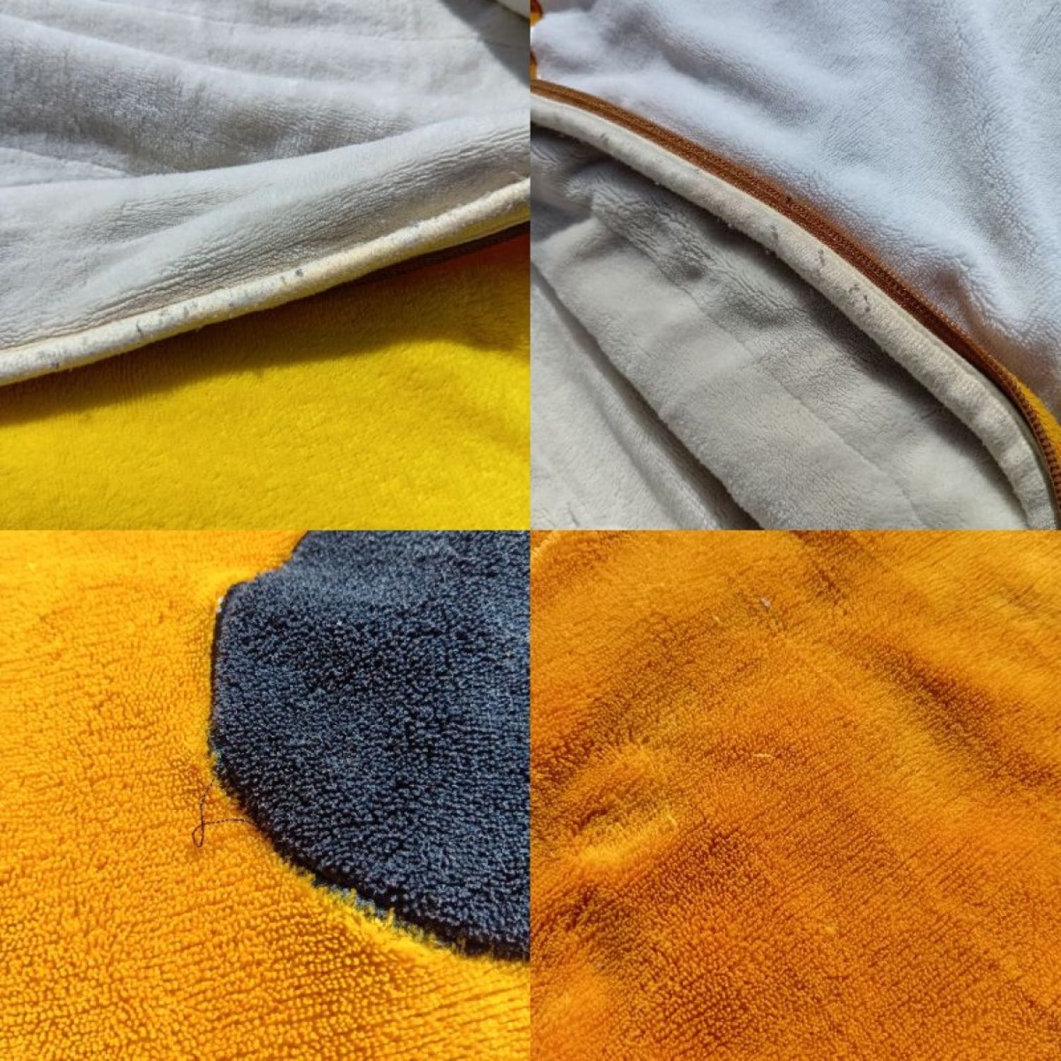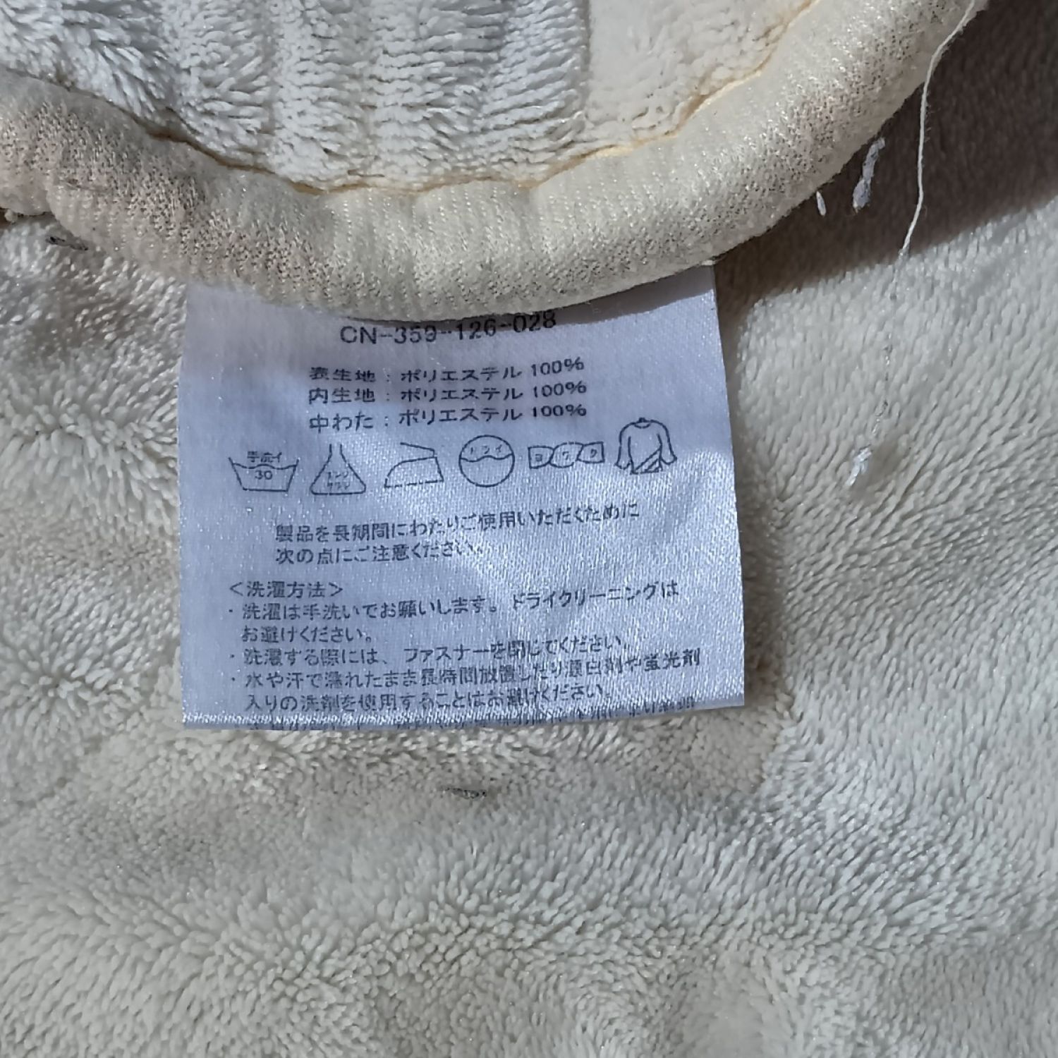 布の継ぎ目などにホツレがございます。特に横部分にワタの出ている箇所、開口部に目立ったホツレがございます。