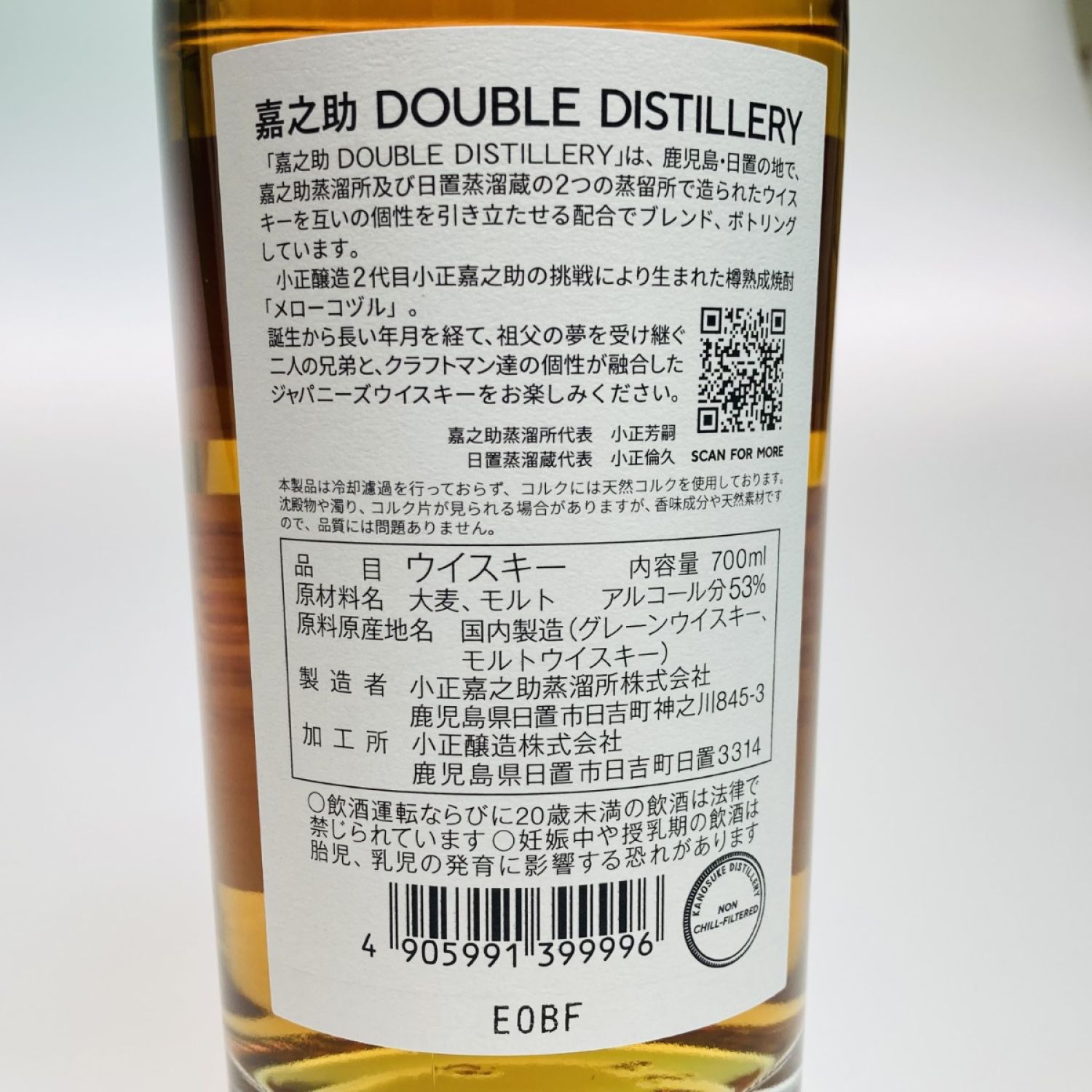 【北海道内限定発送】 KANOSUKE 嘉之助 DOUBLE DISTILERY ジャパニーズウイスキー 700ml 53% 箱付 757 未開栓