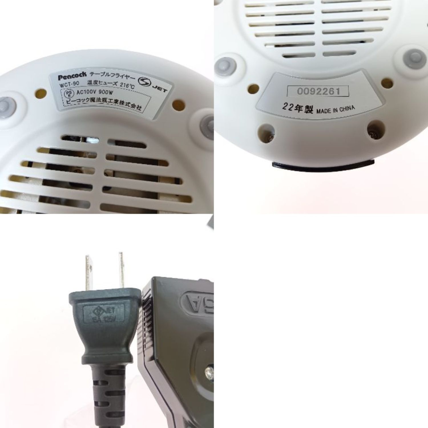 【商品名】中古 Peacock ピーコック テーブルフライヤー 電気フライヤー WCT-90 ホワイト Sランク