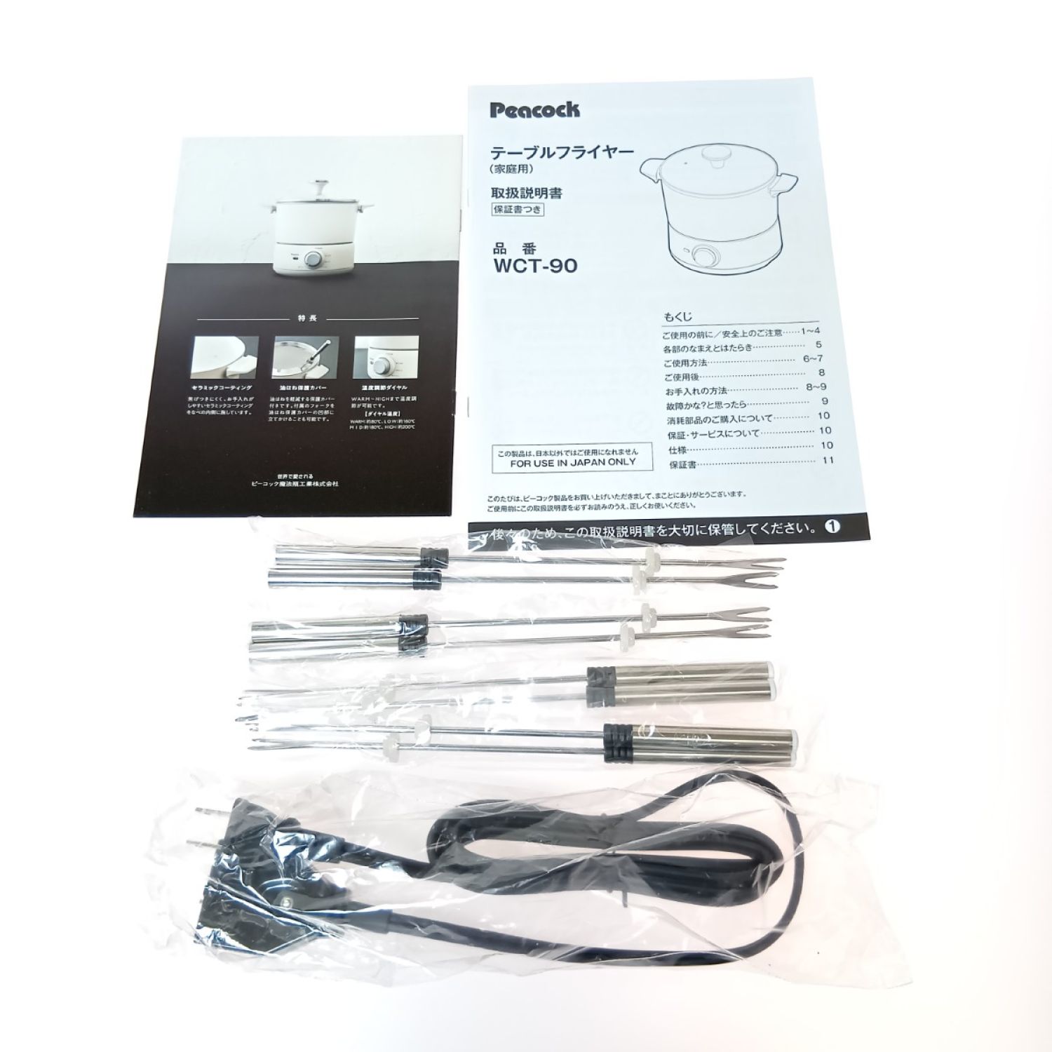 Peacock ピーコック テーブルフライヤー 電気フライヤー WCT-90 ホワイト