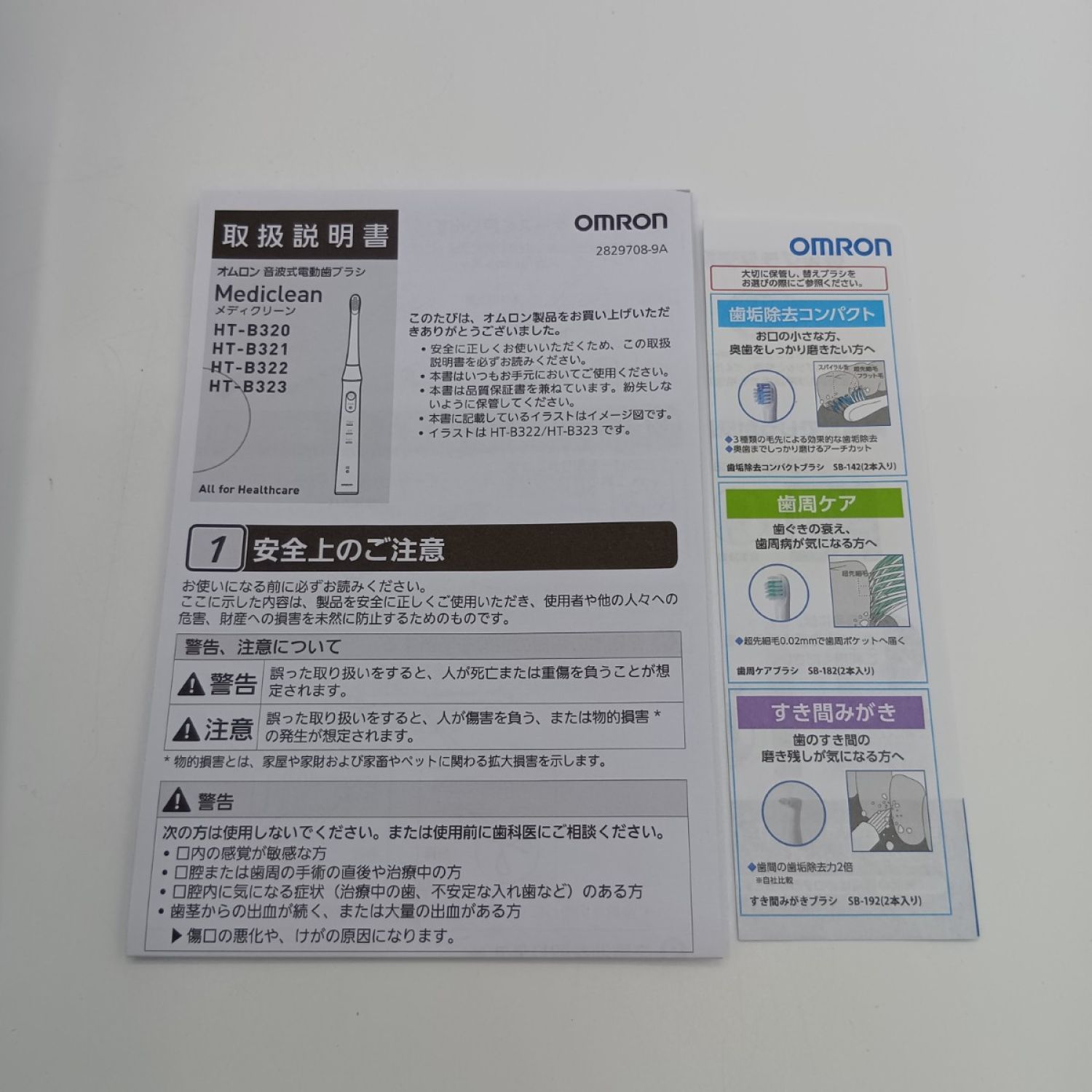【付属品】付属品完備 歯垢除去ブラシ(SB-172:1本)、歯垢除去コンパクトブラシ(SB-142:1本)、充電器(1台)、ブラシスタンド(1台)、取扱説明書(品質保証書付き)(1 部)