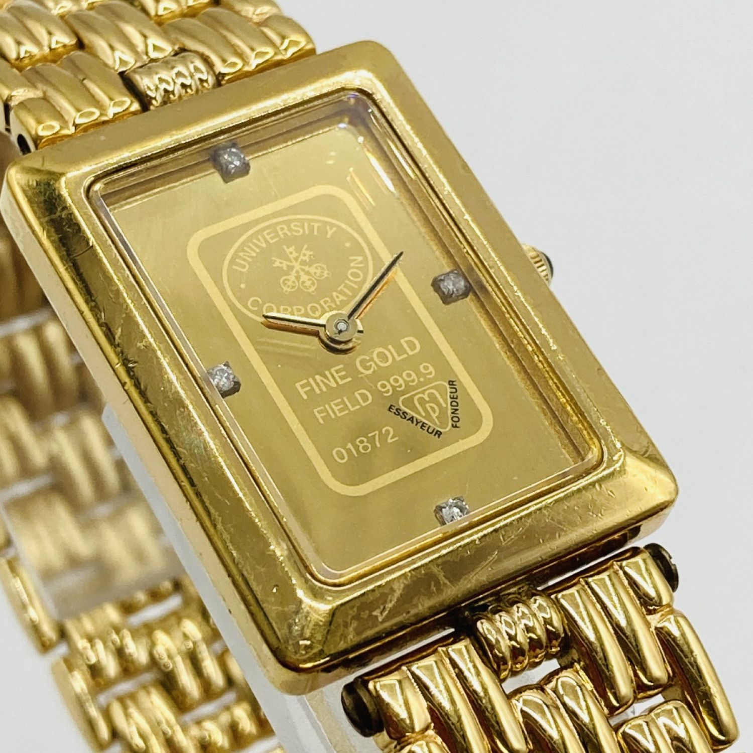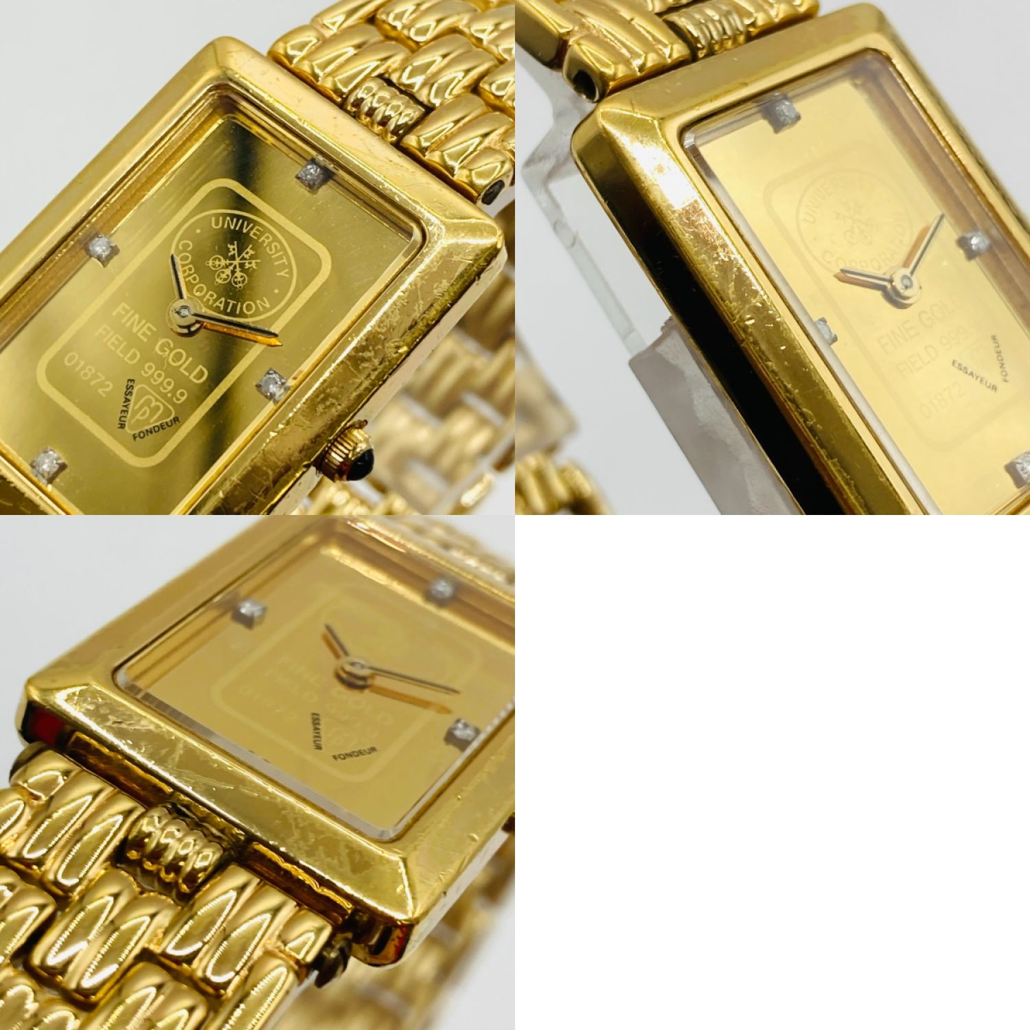 【商品名】中古 UNIVERSITY ユニバーシティ 9-02026 クォーツ 腕時計 4Pダイヤ FINE GOLD 999.9 キズ多 9-02026 Cランク