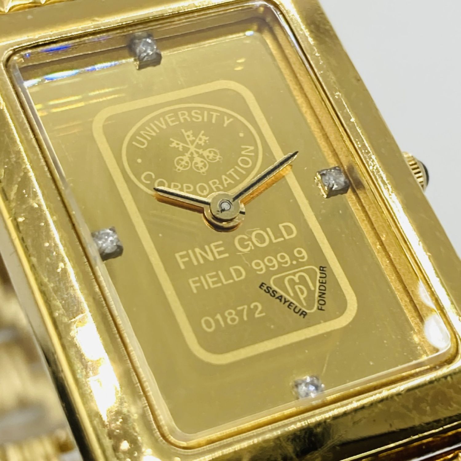 UNIVERSITY ユニバーシティ 9-02026 クォーツ 腕時計 4Pダイヤ FINE GOLD 999.9 キズ多 9-02026