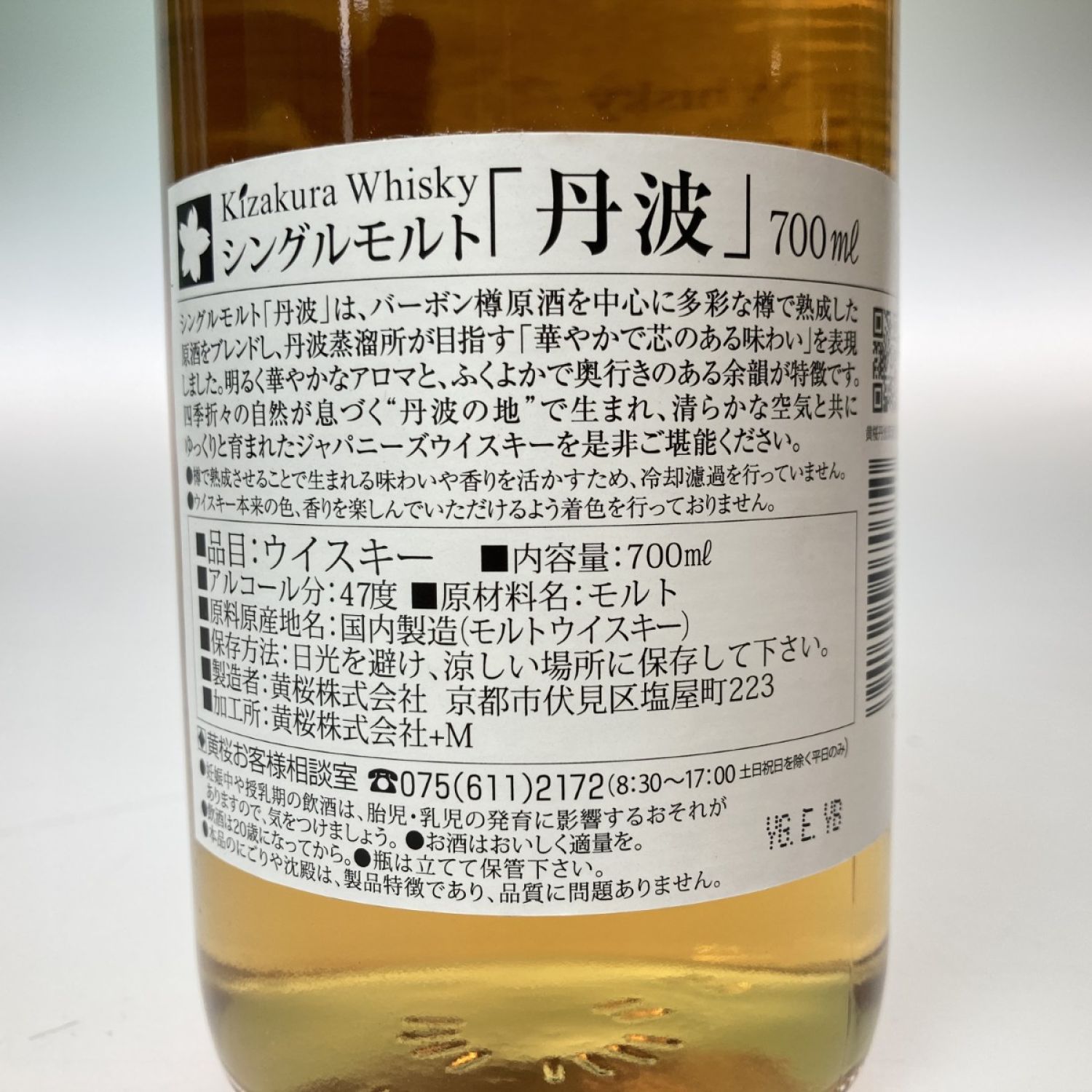 【北海道内限定発送】 黄桜 丹波 シングルモルト ウイスキー 700ml 47% 箱付 未開栓