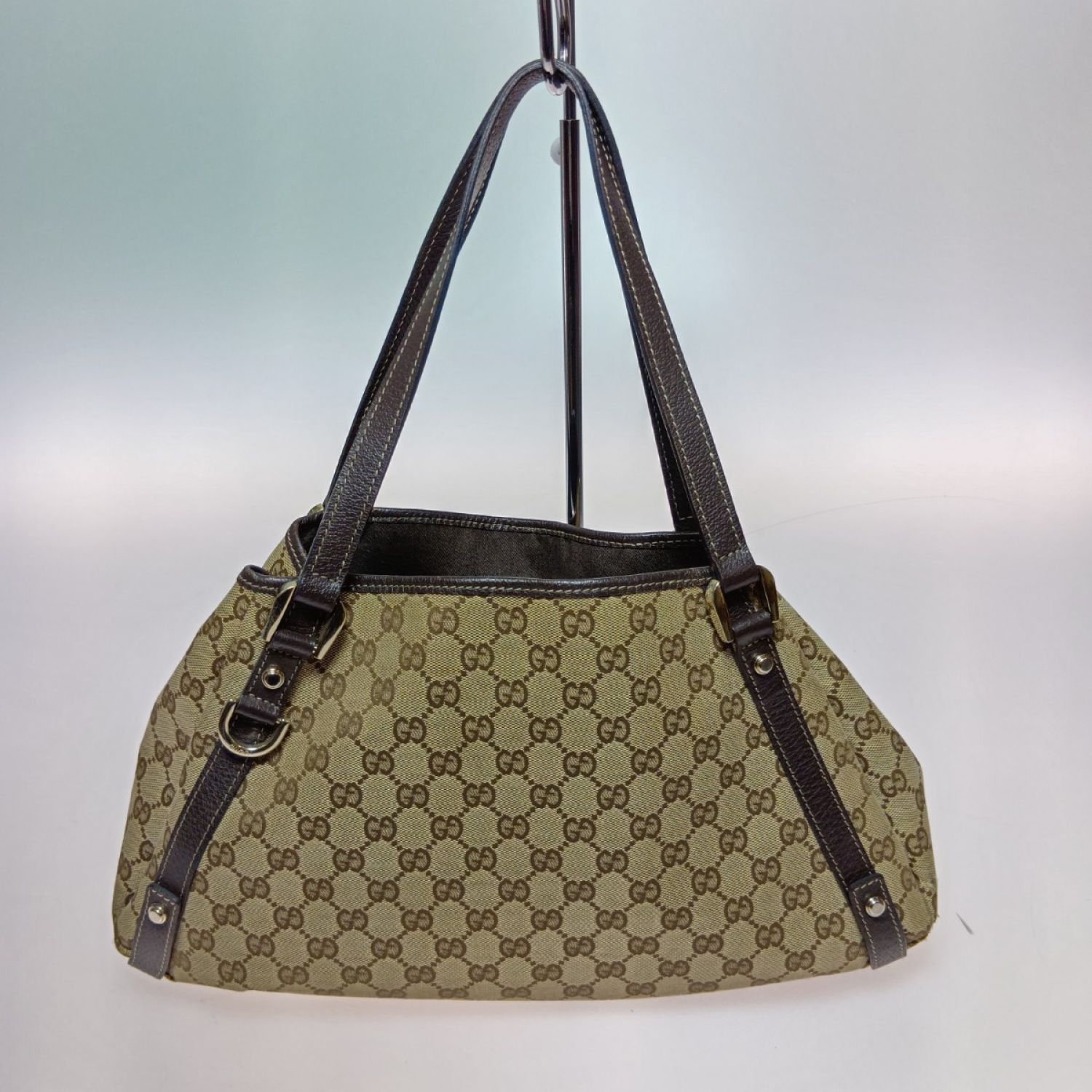 【商品名】中古 GUCCI グッチ GGキャンパス トートバッグ 130736 ベージュ x ブラウン Cランク