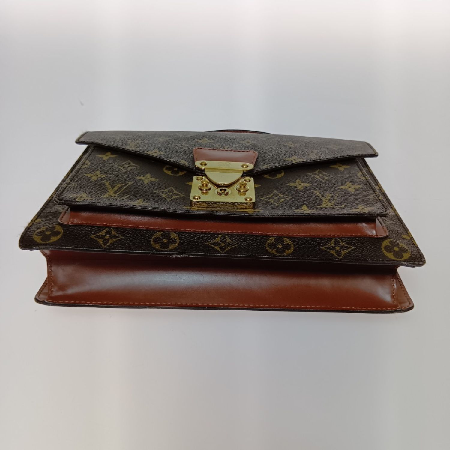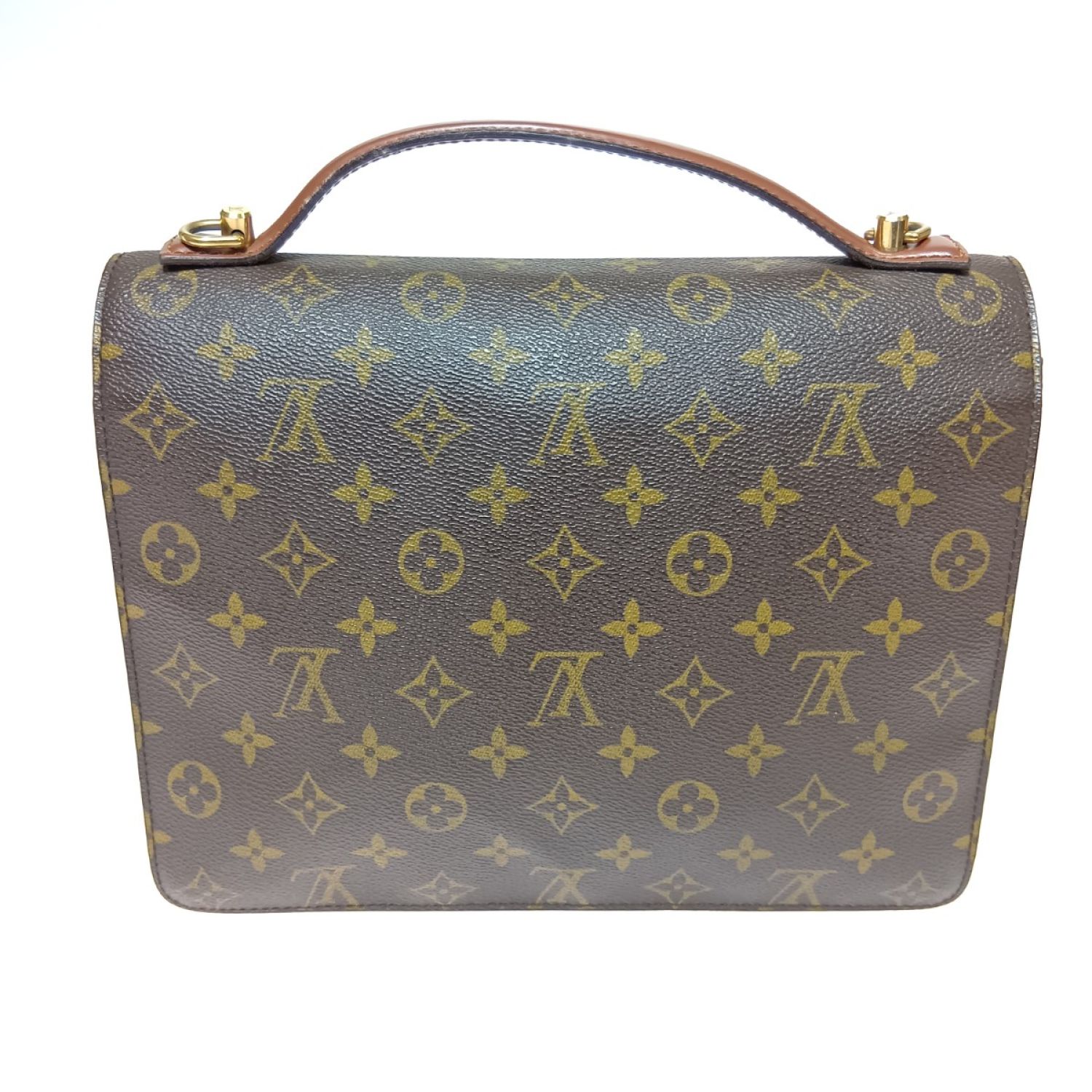 LOUIS VUITTON ルイヴィトン モノグラム モンソー ビジネスバッグ M51185 ブラウン ストラップ欠品 ポケット中ベタつき有