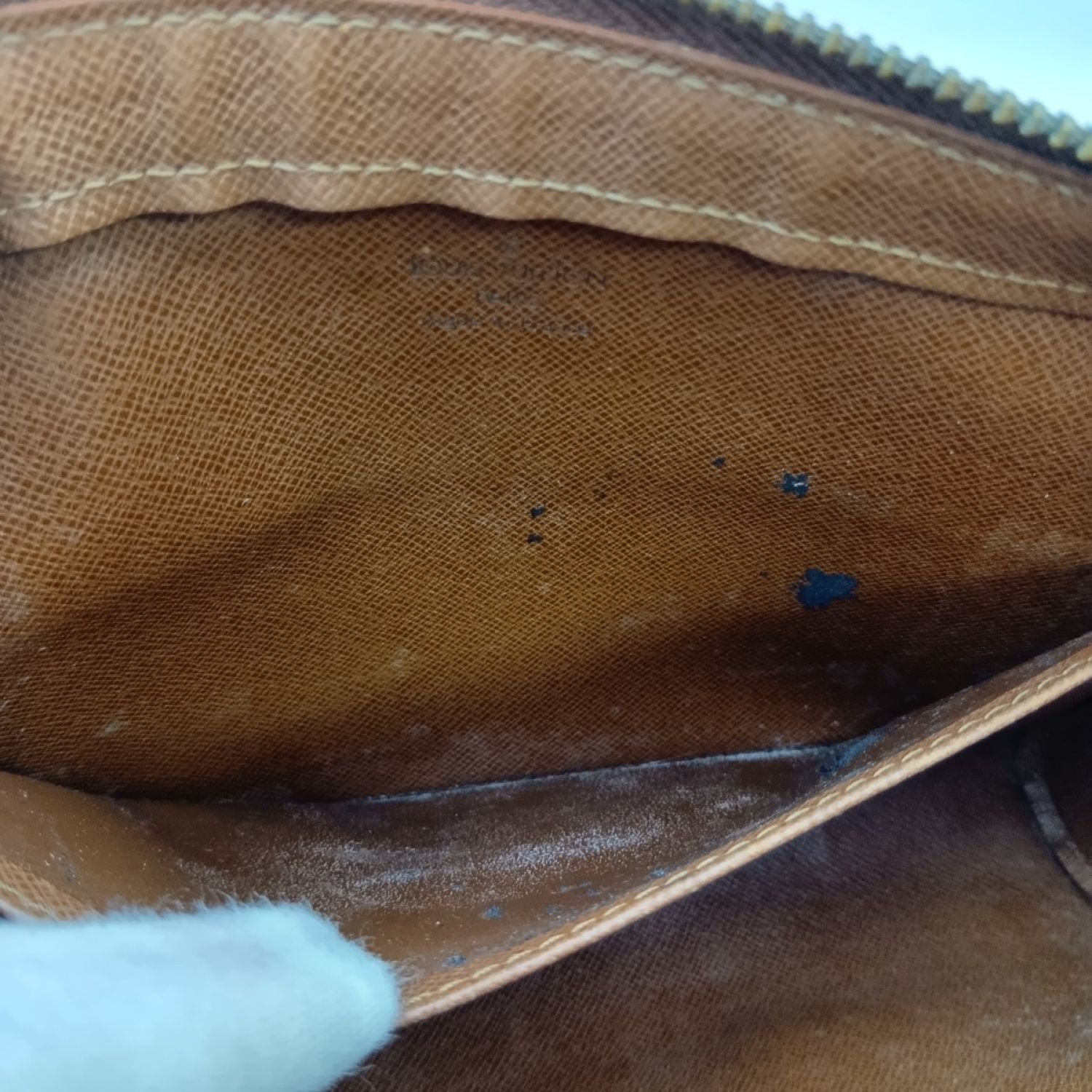 本体内側が劣化しており、ポケット内にべたつき、剥がれなど大きなダメージがございます。