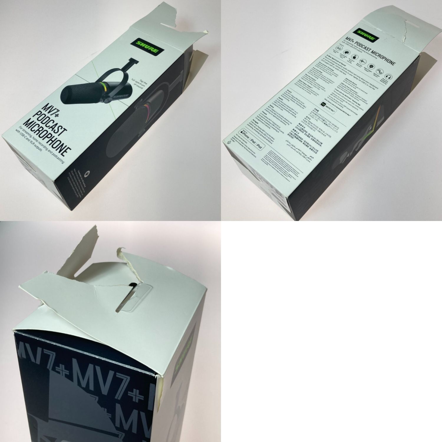 shure ポッドキャストマイクロホン ダイミナミックマイク USB-Cケーブル欠品 箱破れ有 mv7+