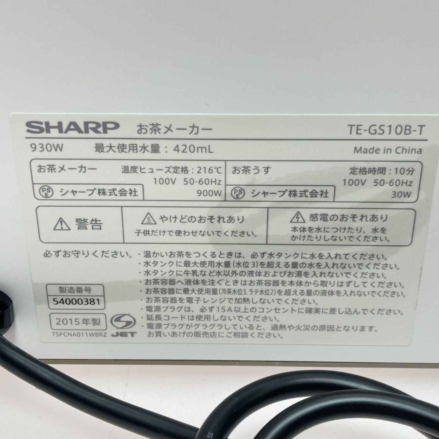 【商品名】中古 SHARP シャープ HEALSIO ヘルシオ お茶プレッソ TE-GS10B-T ブラウン Sランク