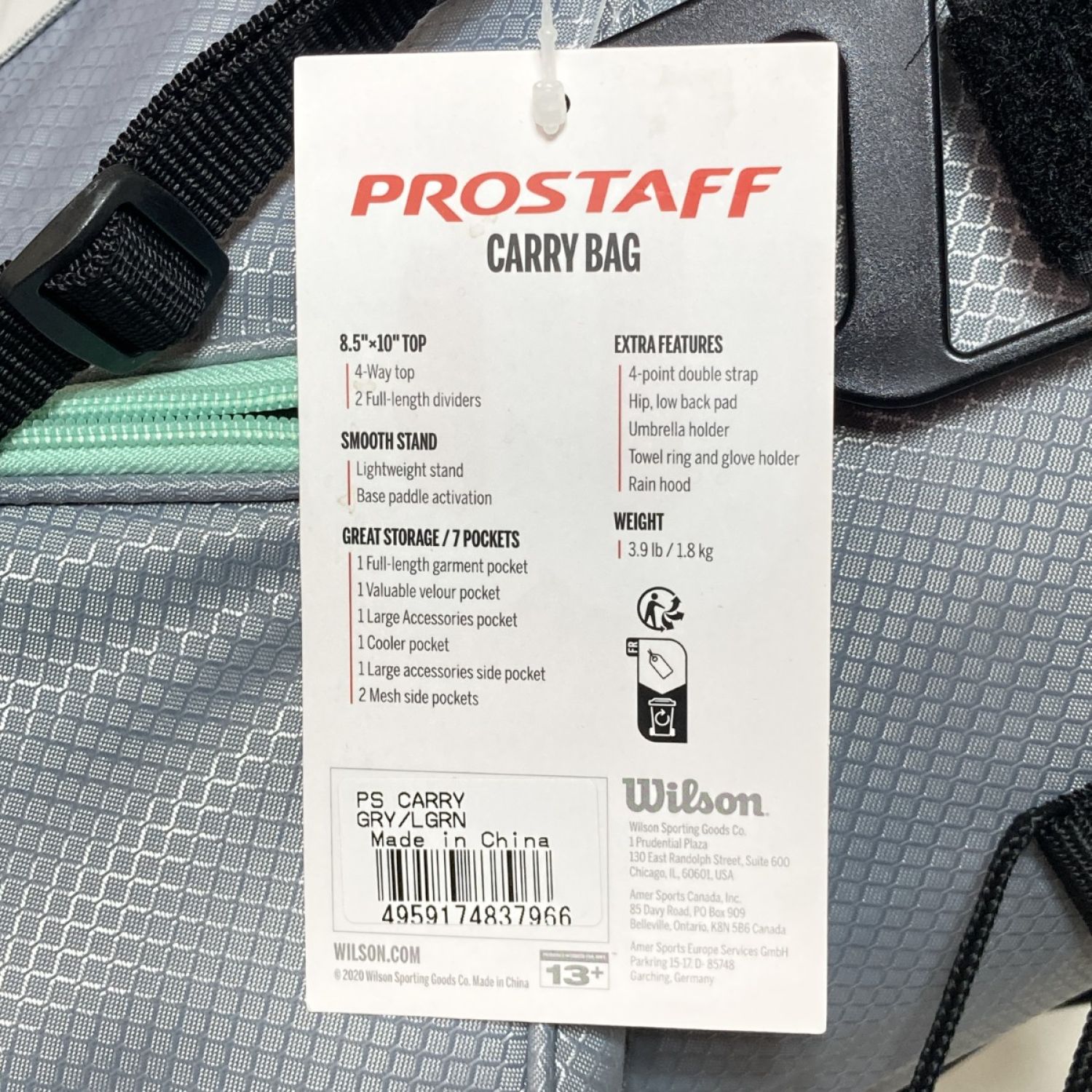 Wilson ウィルソン Prostaff Carry スタンド式キャディバッグ 8.5型 4分割 1.8kg グレー x ライトグリーン