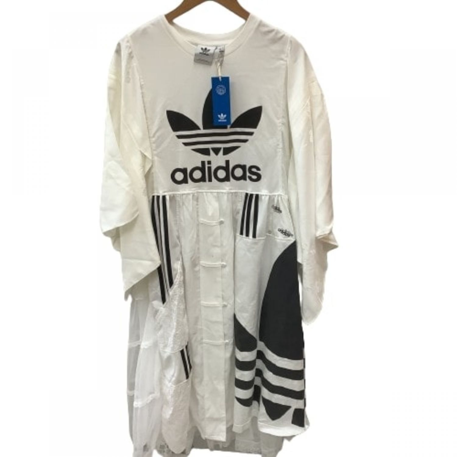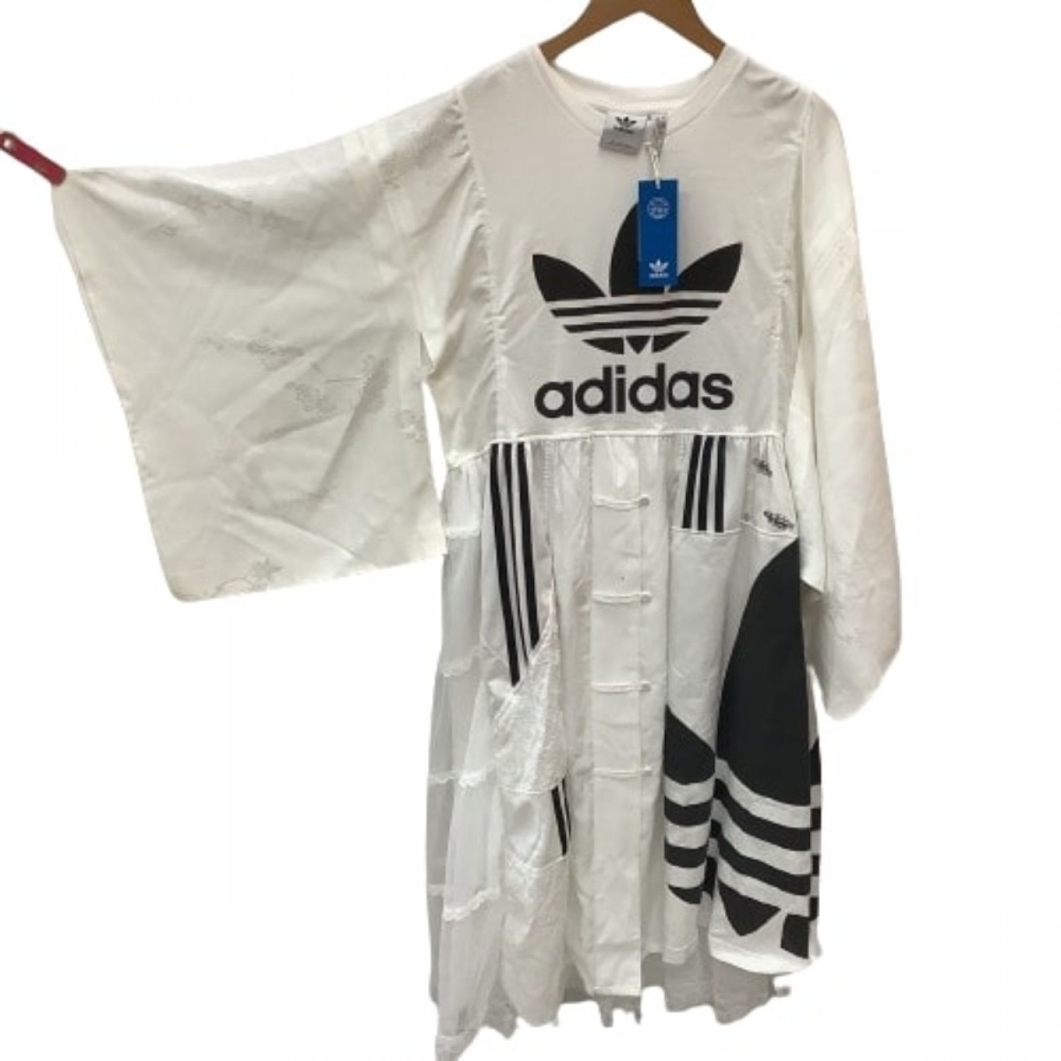 adidas アディダス レディース ワンピース リメイク品 1点もの 着物風 レース スカート L ia4816 ホワイト