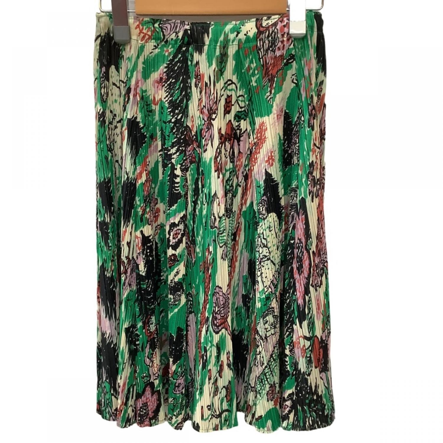 【商品名】中古 ISSEY MIYAKE イッセイミヤケ PLEATS PLEASE ひざ丈スカート 赤ずきん PP93-JG937 グリーン Bランク