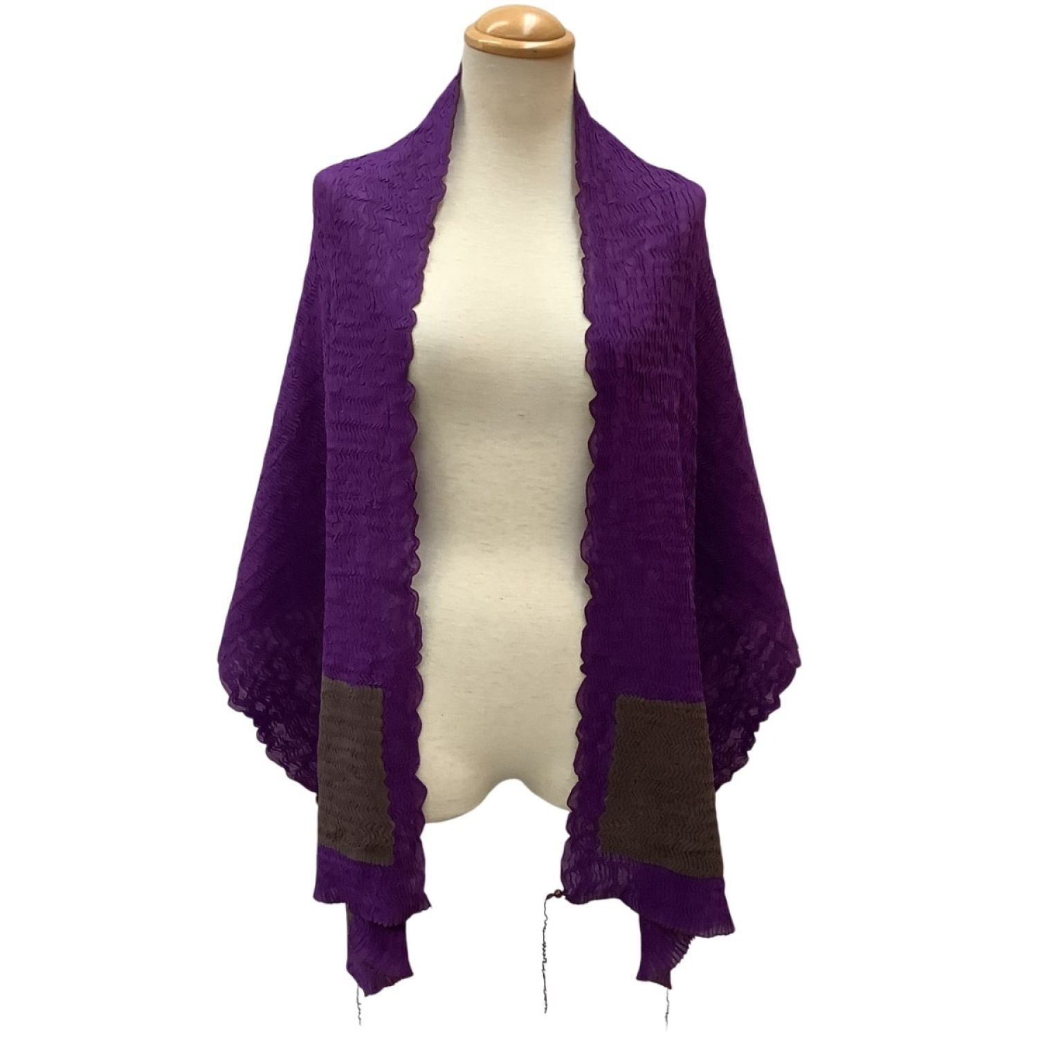 【商品名】中古 ISSEY MIYAKE イッセイミヤケ プリーツ 波 ストール ブラウン×パープル Bランク