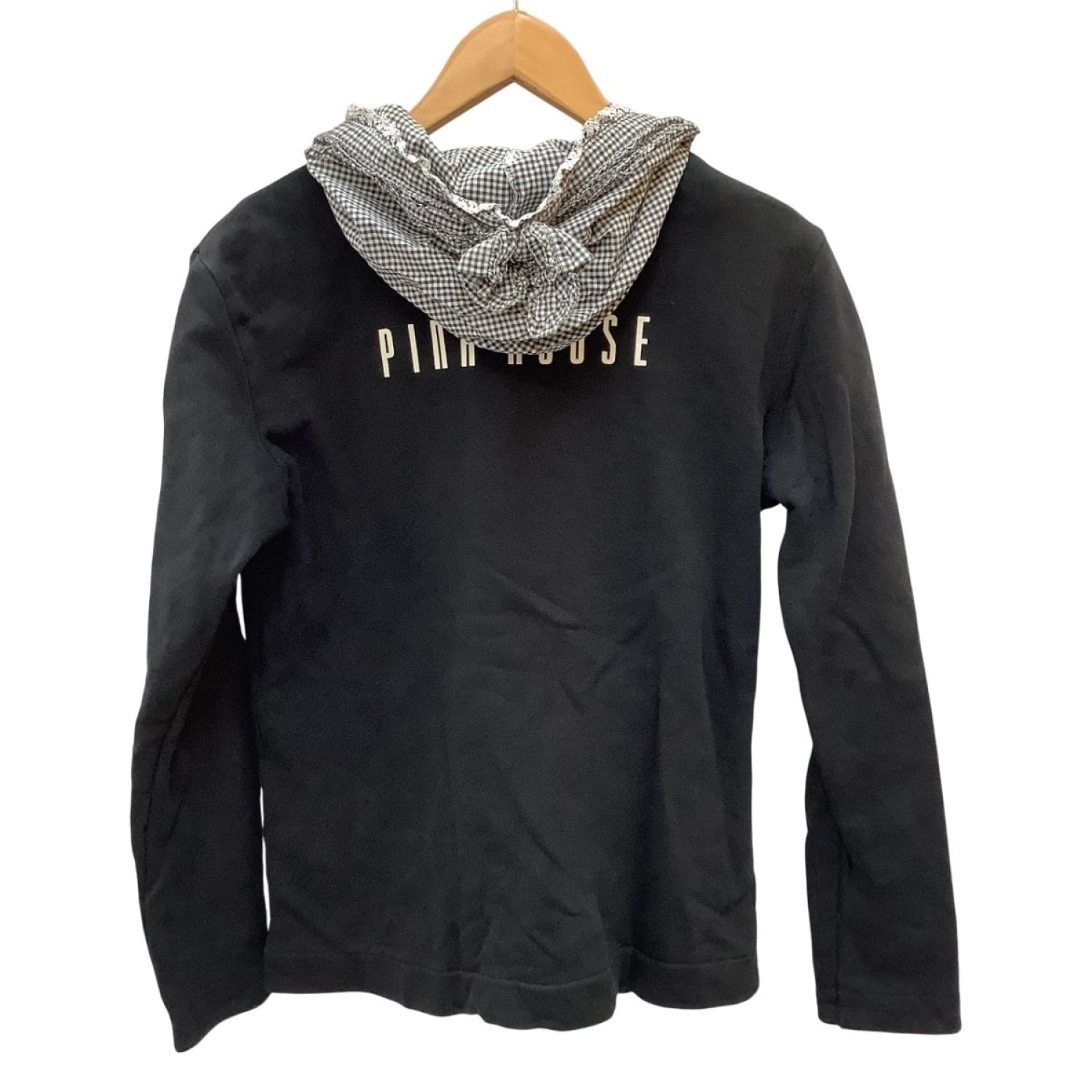 【商品名】中古 PINK HOUSE ピンクハウス レディース ジャケット フード付き チェック ピコフリル SIZE M ブラック Bランク