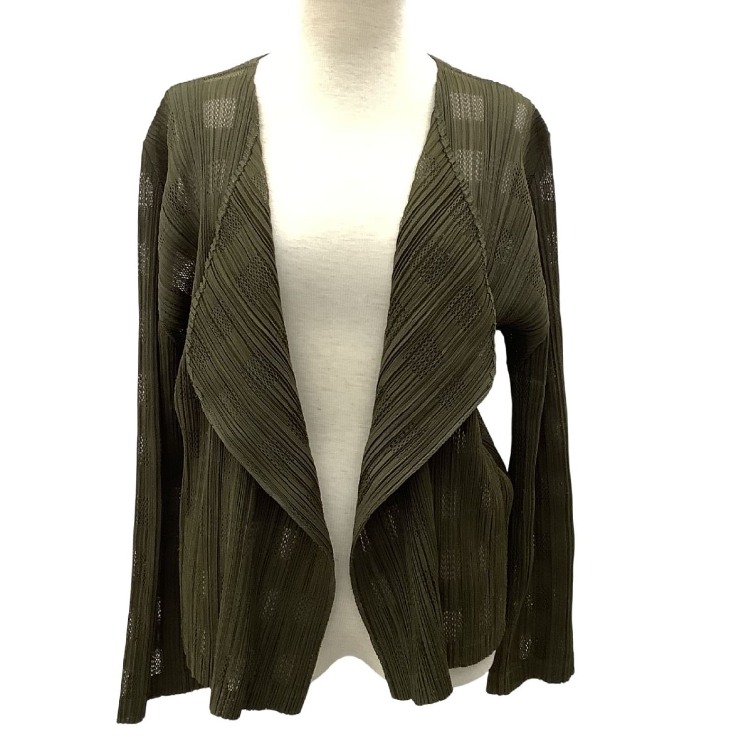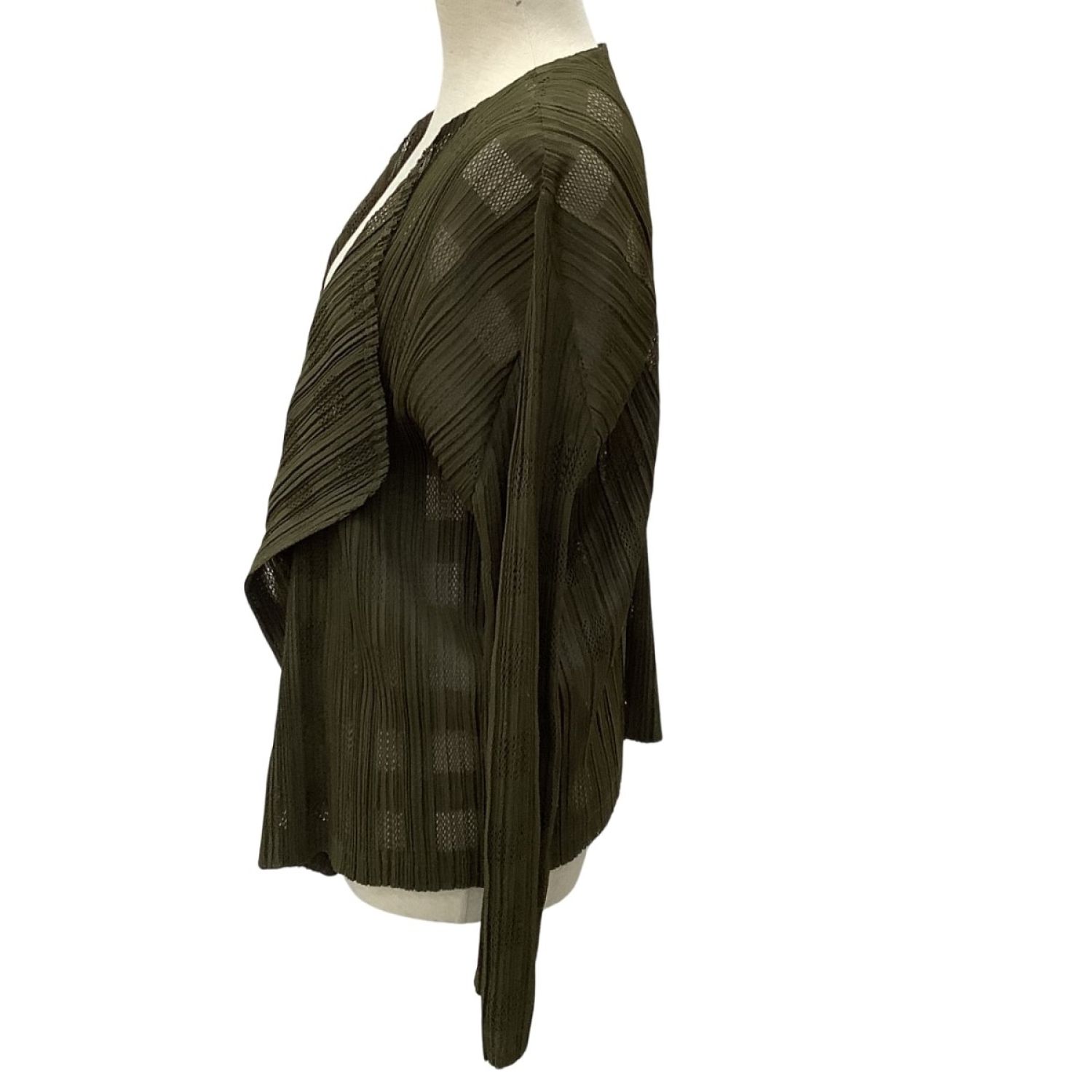 ISSEY MIYAKE イッセイミヤケ PLEATS PLEASE カーディガン メッシュ チェック SIZE 3 PP63-J0553 オリーブ