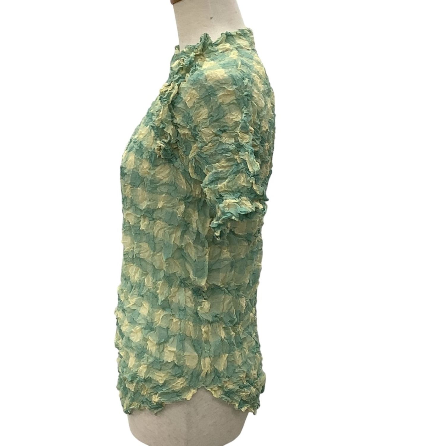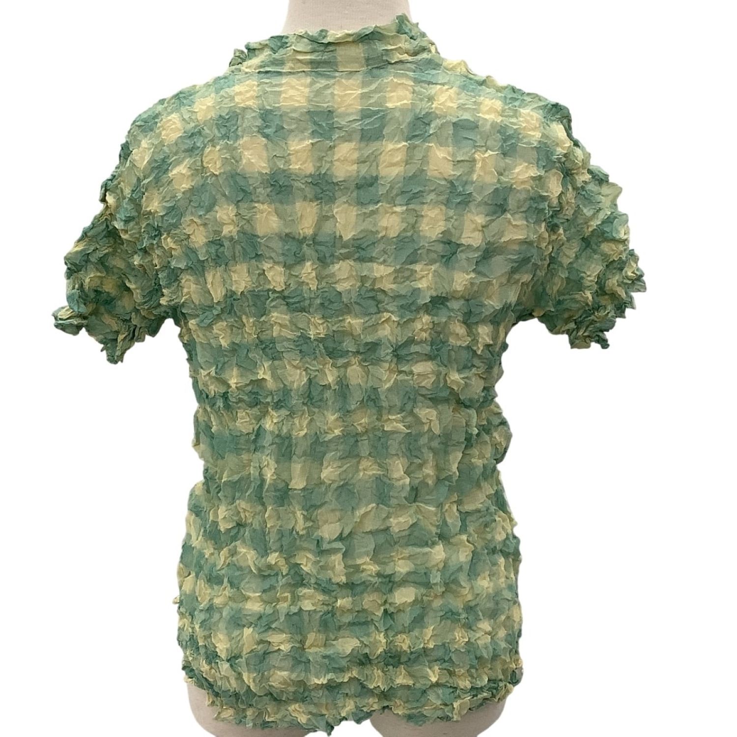 【商品名】中古 ISSEY MIYAKE イッセイミヤケ レディース 絞り カットソー SIZE 2 チェック IM32FJ209 グリーン×イエロー Bランク
