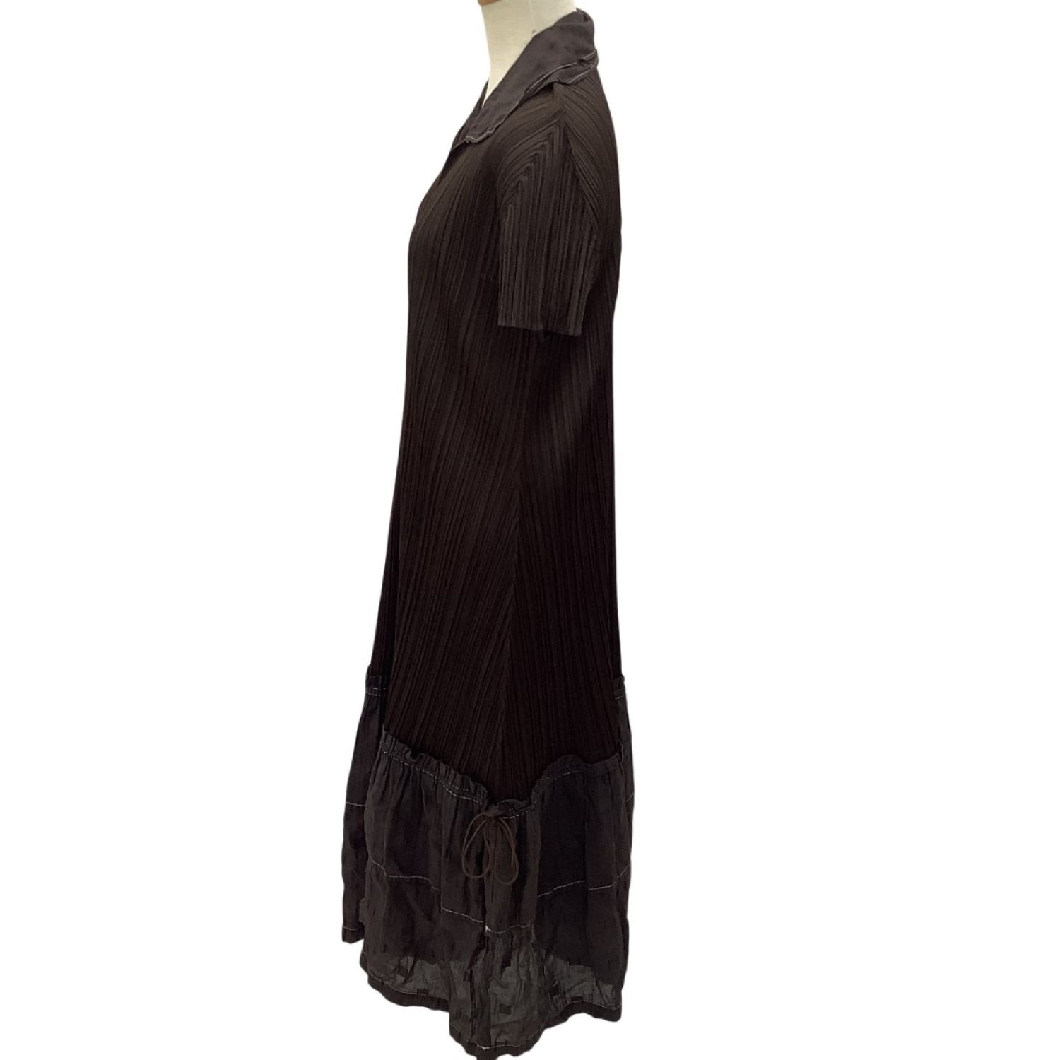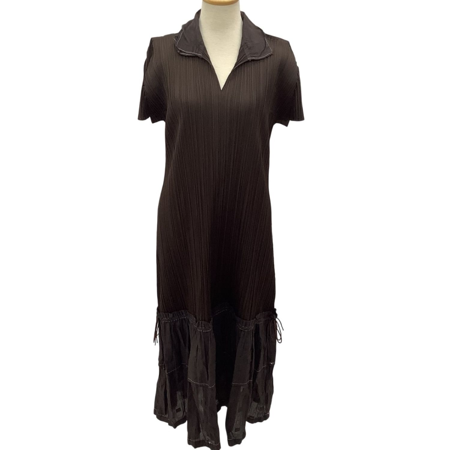 【商品名】中古 ISSEY MIYAKE イッセイミヤケ PLEATS PLEASE ワンピース ティアード切替 SIZE 3 PP43-JH506 ブラウン Bランク