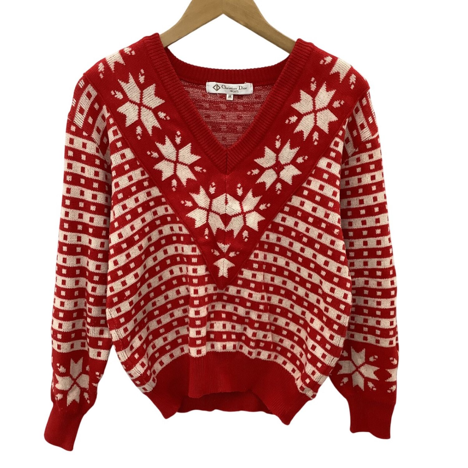 Christian Dior クリスチャンディオール レディース ニット セーター SIZE M レッド×ホワイト
