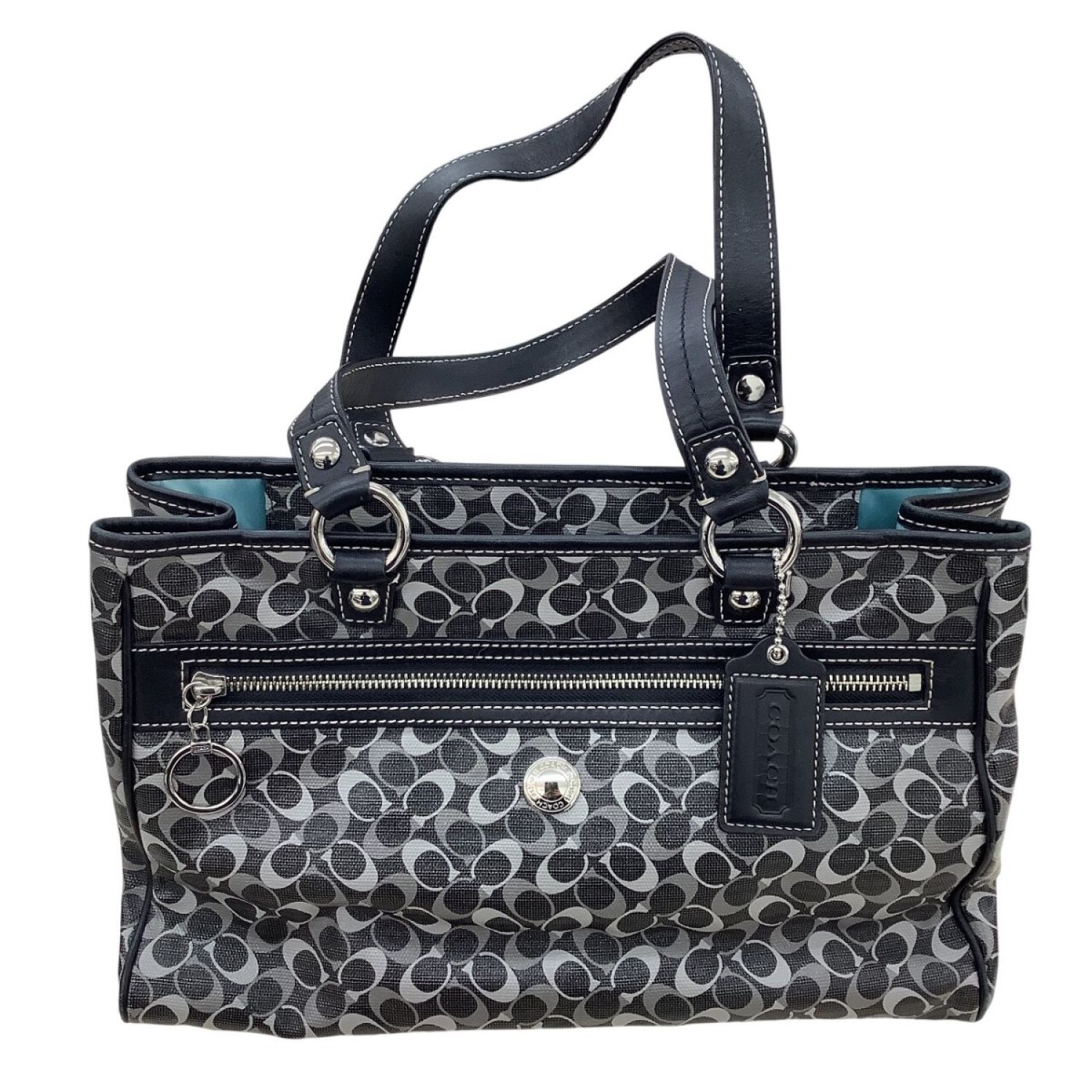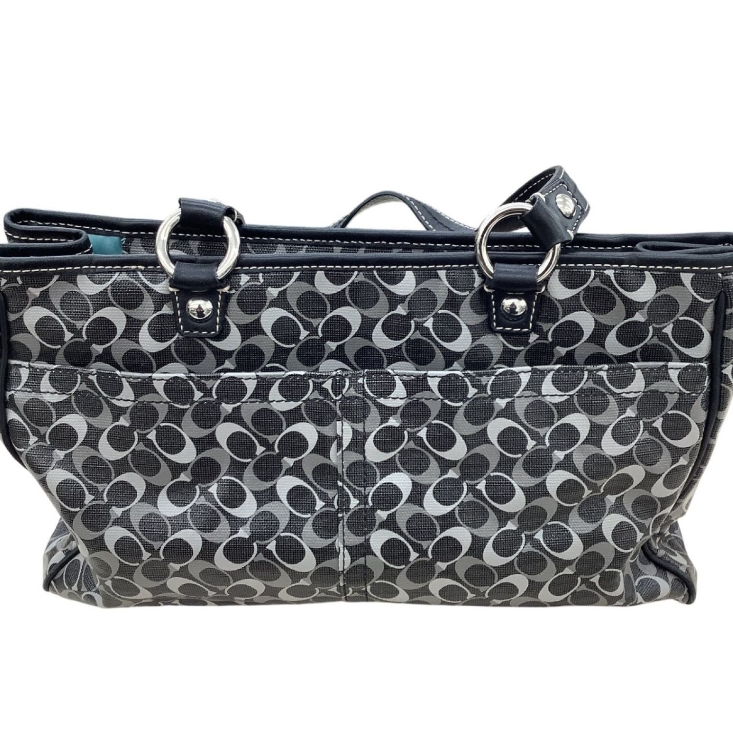 【商品名】中古 COACH コーチ レディース ハンドバッグ シグネチャー ダークグレー×ブラック Bランク