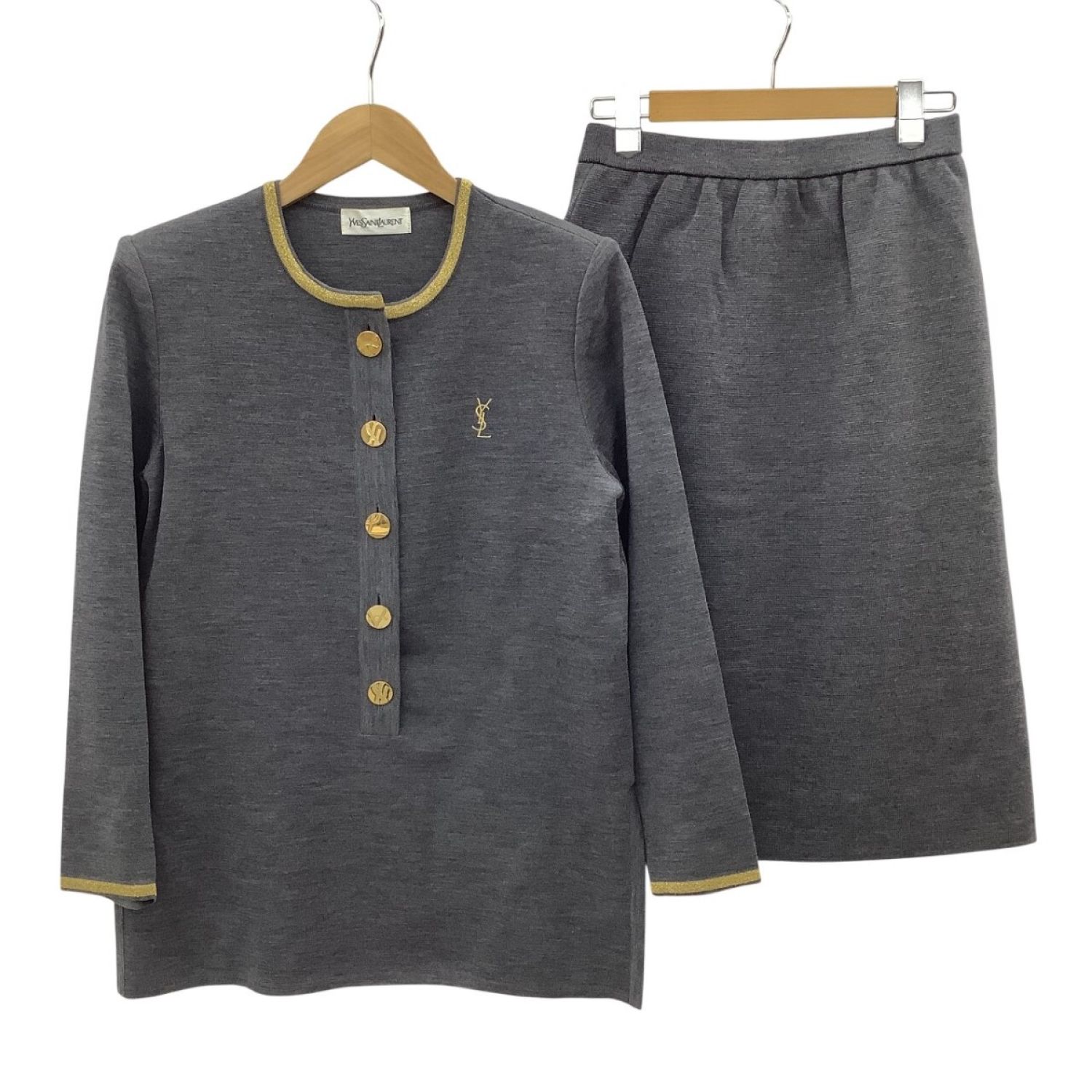 【商品名】中古 Yves Saint Laurent イブサンローラン レディース Vintage セットアップ(カットソー スカート) SIZE M グレー Bランク