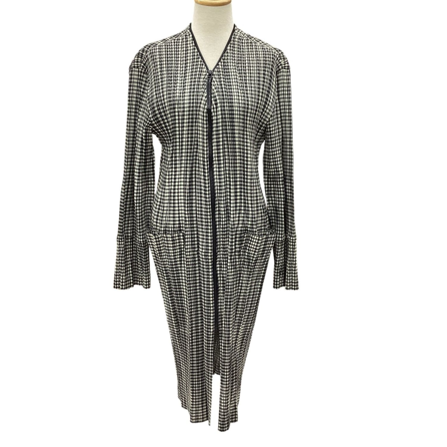 ISSEY MIYAKE イッセイミヤケ プリーツ ジップアップ ロングカーディガン SIZE L IM71-FA902 ベージュ