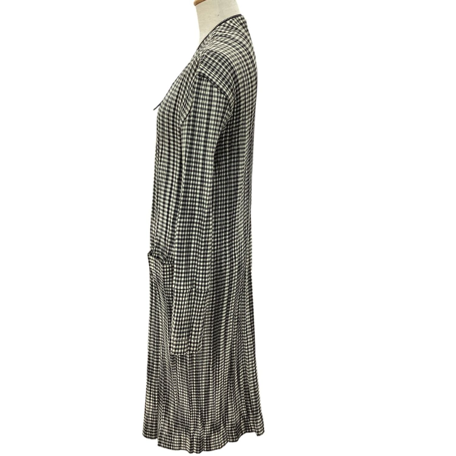 【商品名】中古 ISSEY MIYAKE イッセイミヤケ プリーツ ジップアップ ロングカーディガン SIZE L IM71-FA902 ベージュ Bランク