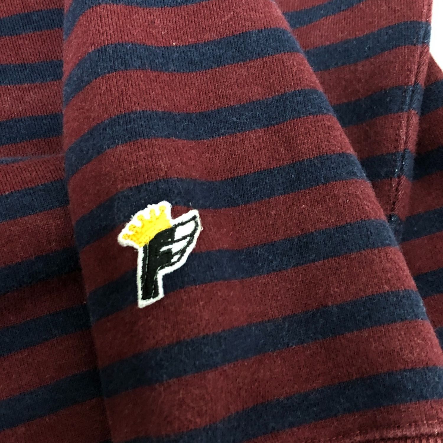 【商品名】中古 FAT エフエーティ スウェット HORIZONAL SKINNY(L) ダメージ有 ボーダー F31920-SW04-AB ワインレッド×ネイビー Cランク