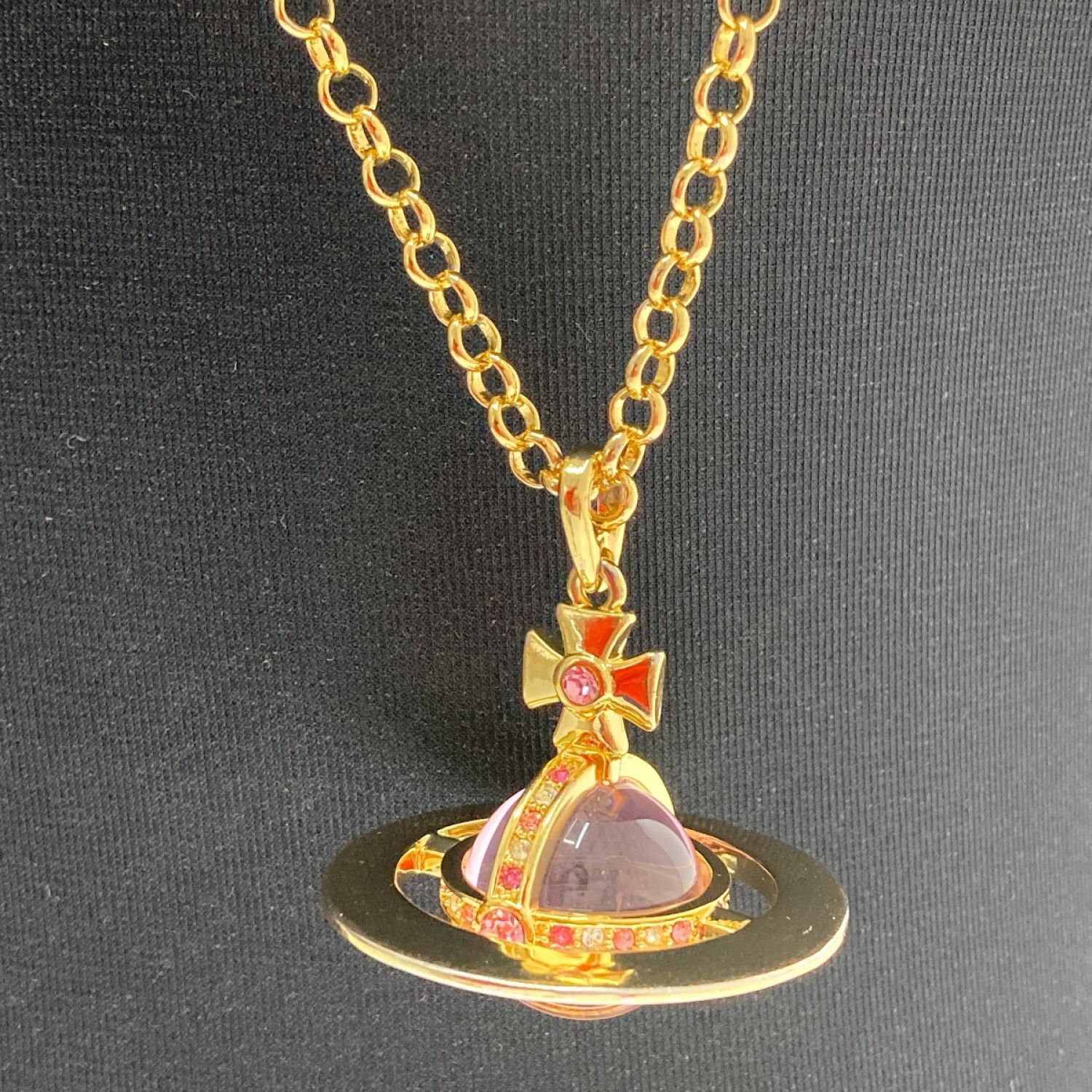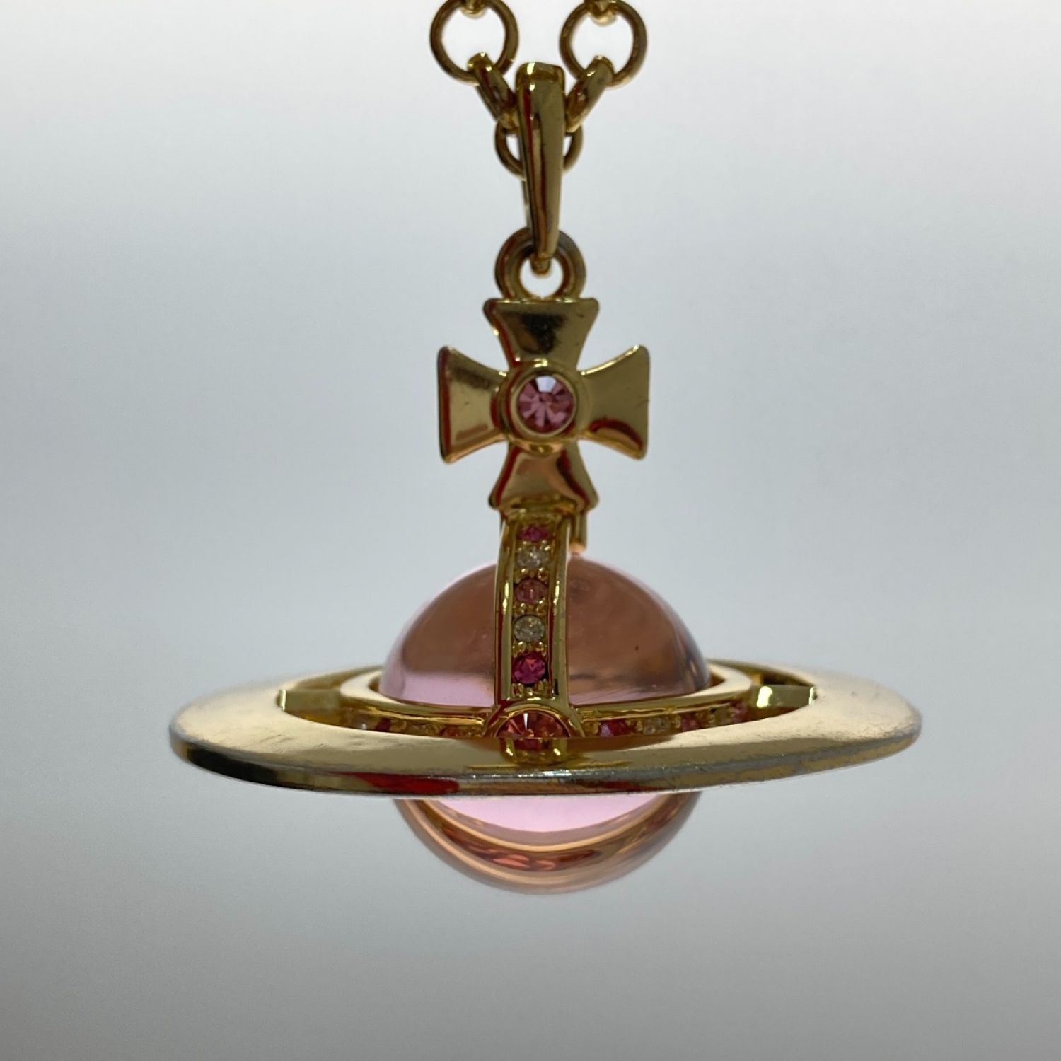 【商品名】中古 Vivienne Westwood ヴィヴィアン・ウエストウッド オーブネックレス ゴールド×ピンク Bランク