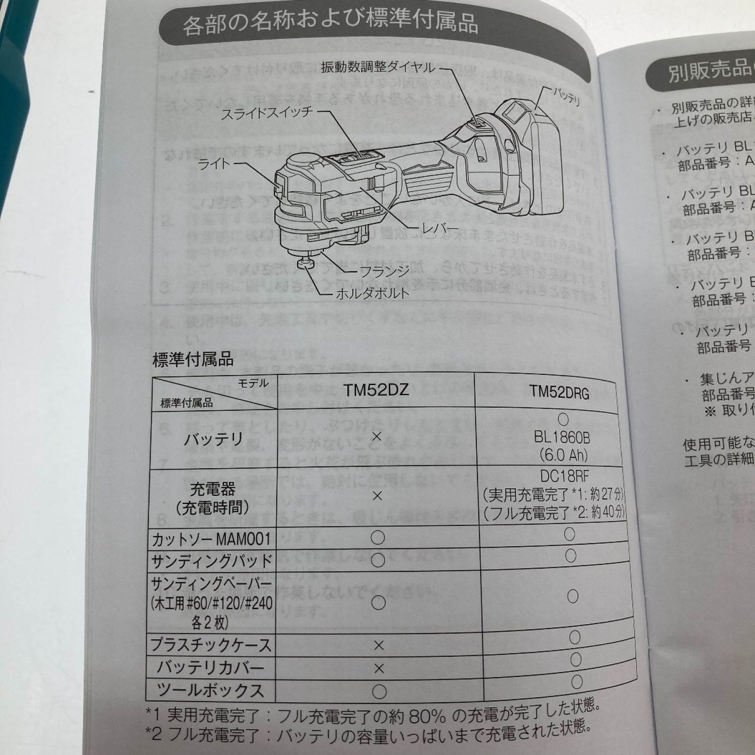 MAKITA マキタ 充電式マルチツール 18v 6.0Ah TM52DRG ブルー