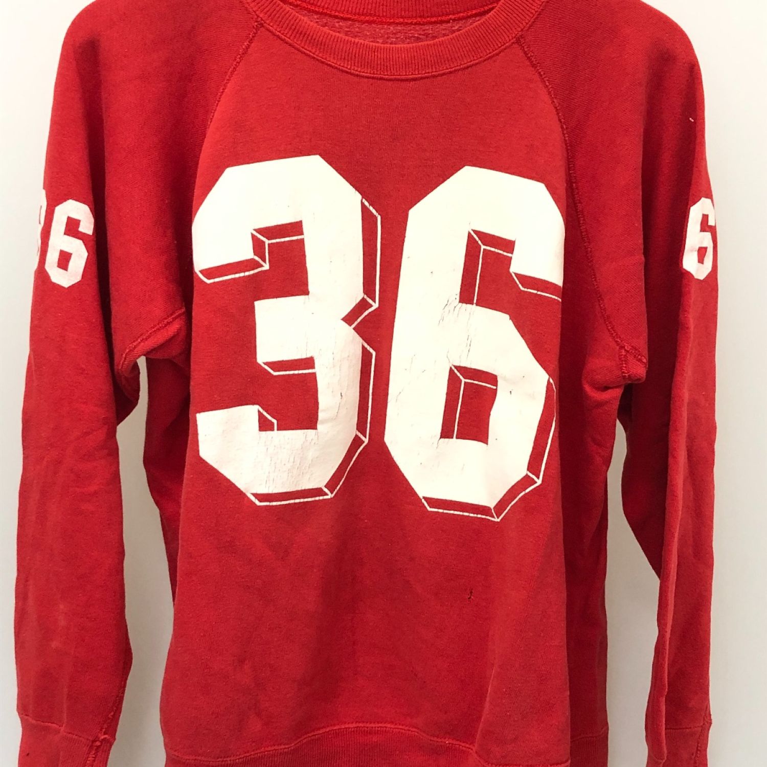 【商品名】中古 60~70s Unknown スウェット ラグランスウェット トレーナー 古着 脇下ガゼット レッド Cランク