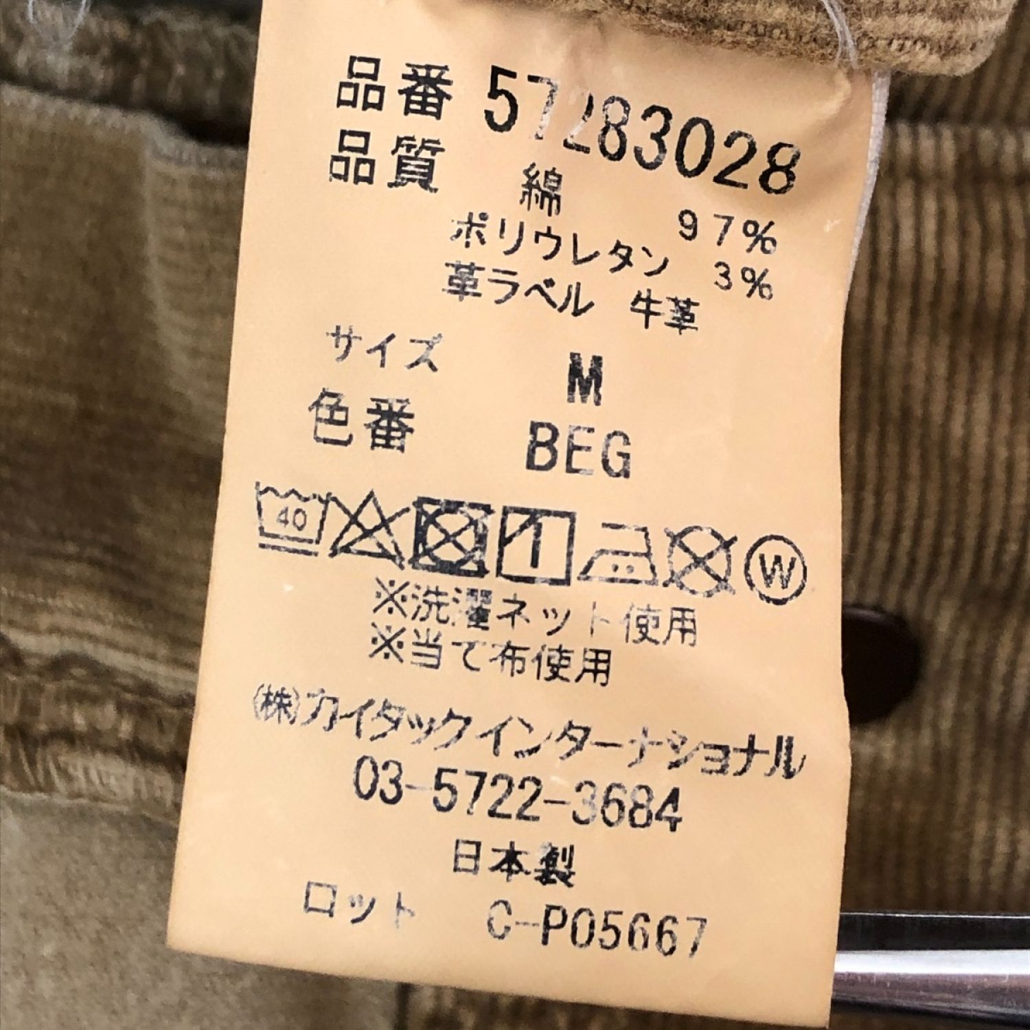 【商品名】中古 YANUK ヤヌーク パンツ コーデュロイパンツ SIZE M ベージュ Cランク