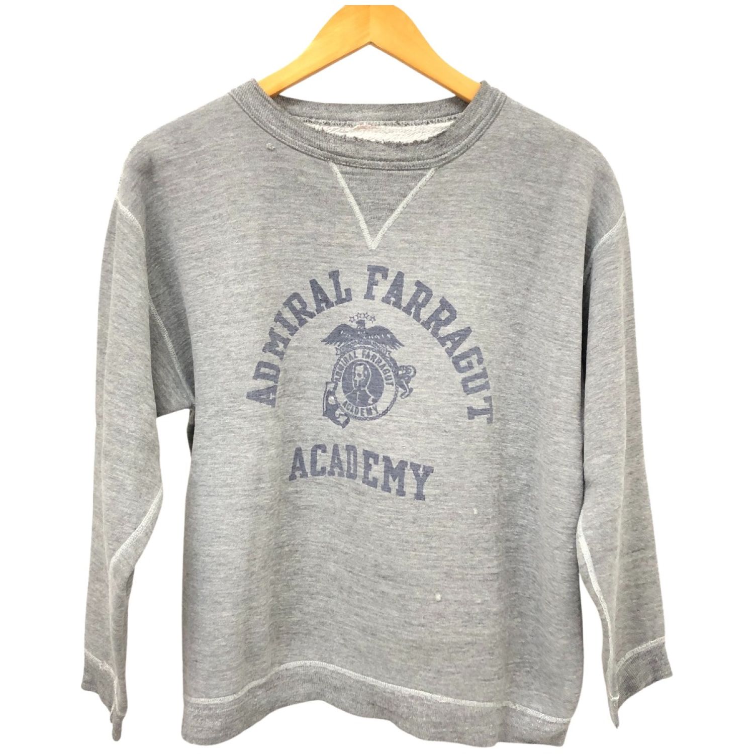 【商品名】中古 60s RUSSELL スウェット トレーナー 古着 サイズタグ後期 前Vガゼット 染み込みプリント グレー Cランク