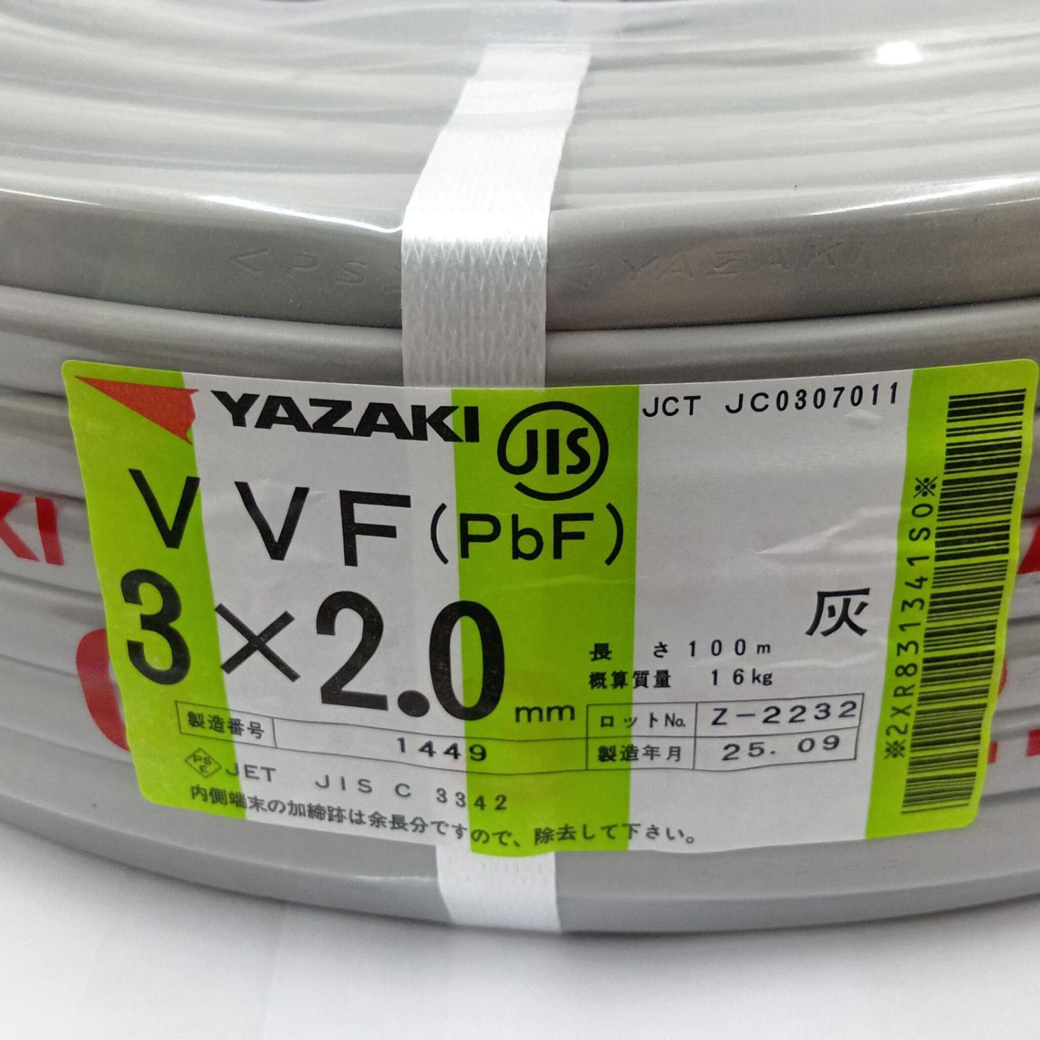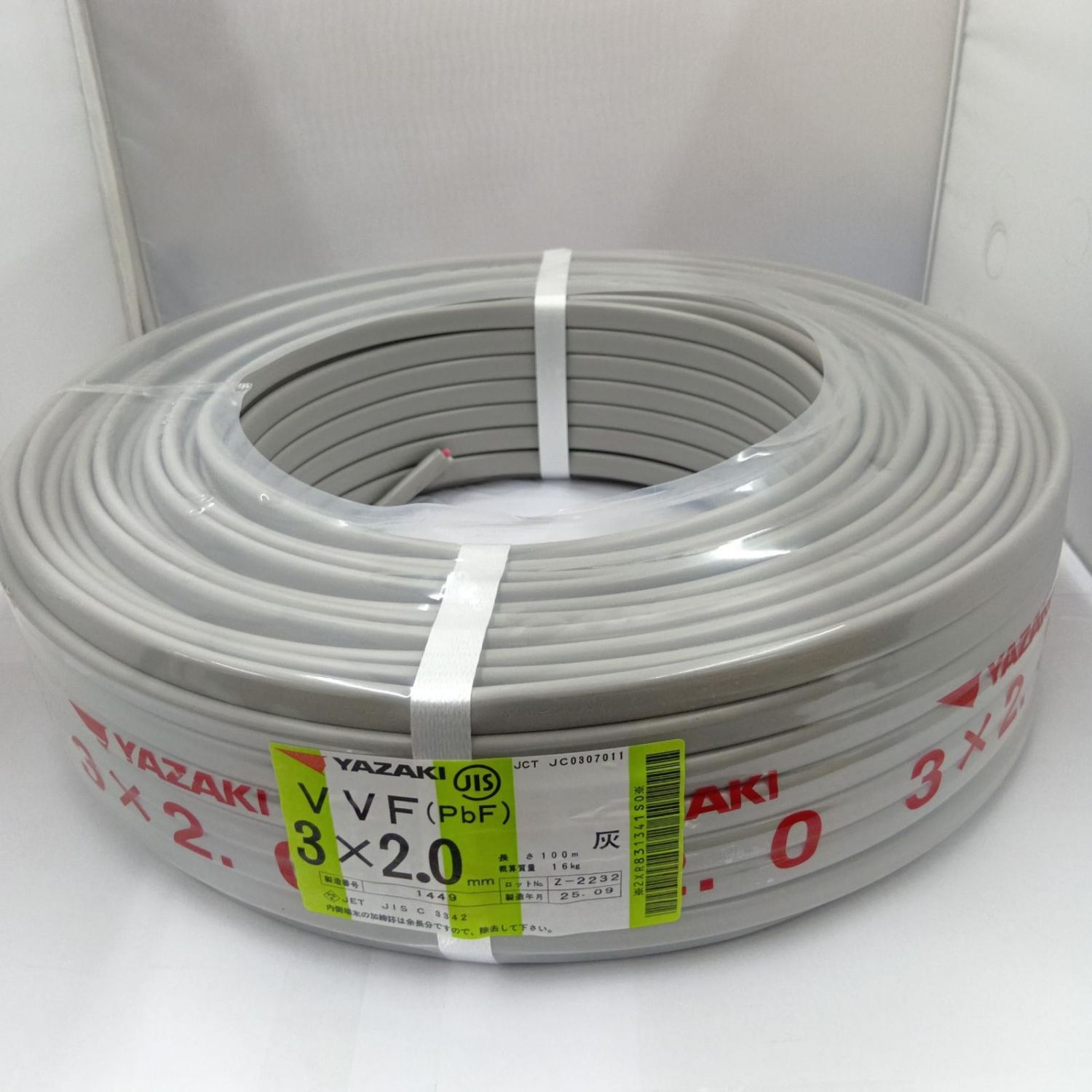 YAZAKI VVFケーブル 電材 3芯 2.0mm×100m 25.9製造