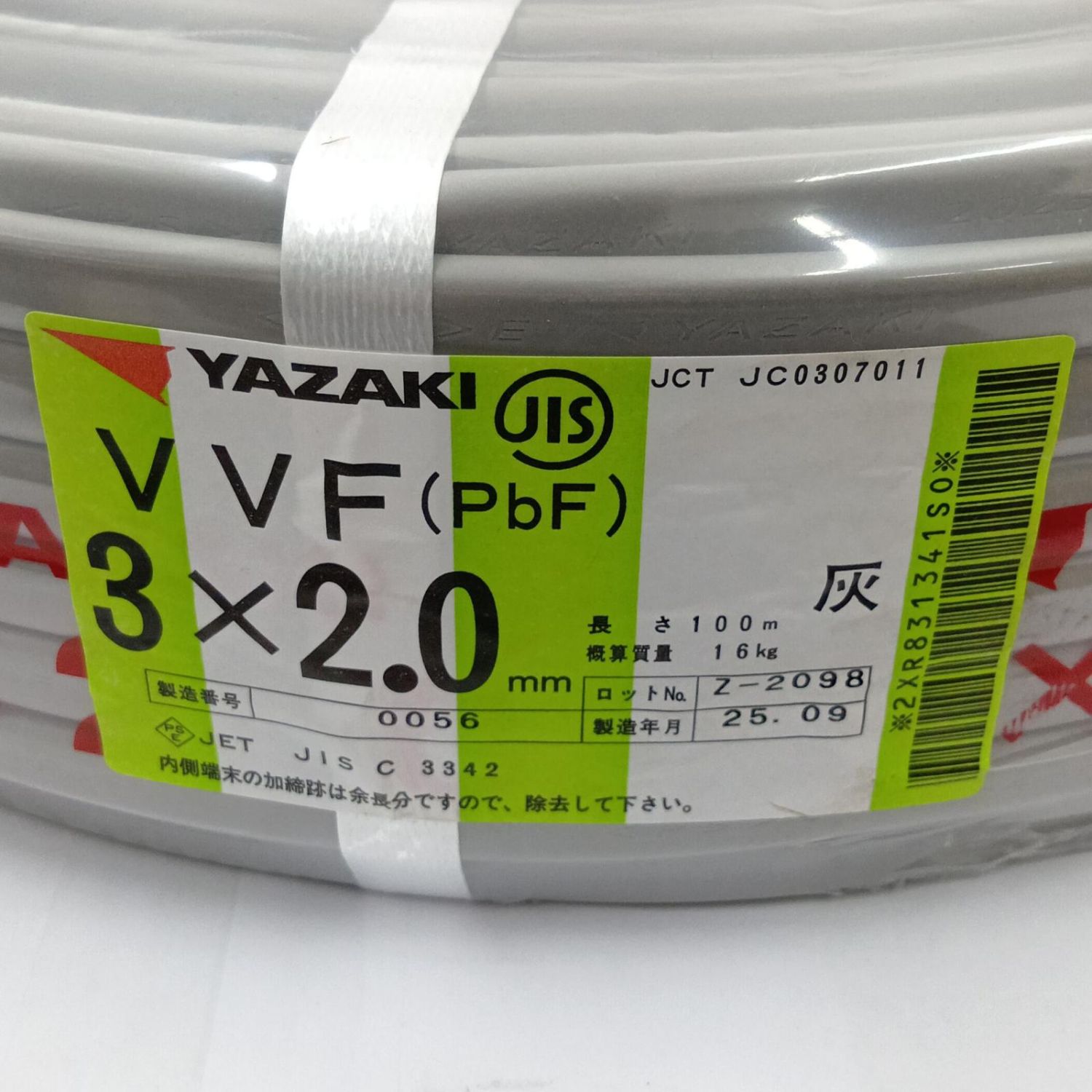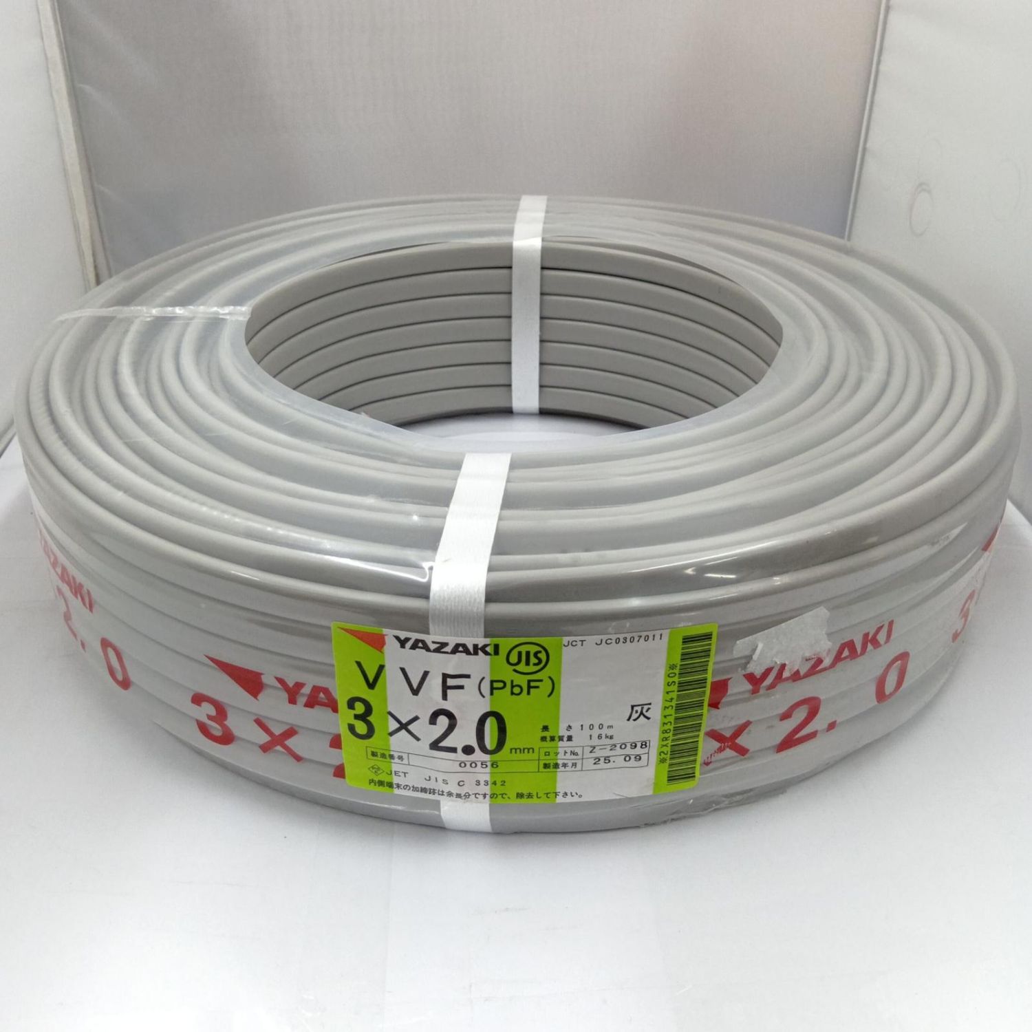 YAZAKI VVFケーブル 電材 3芯 2.0mm×100m 25.9製造