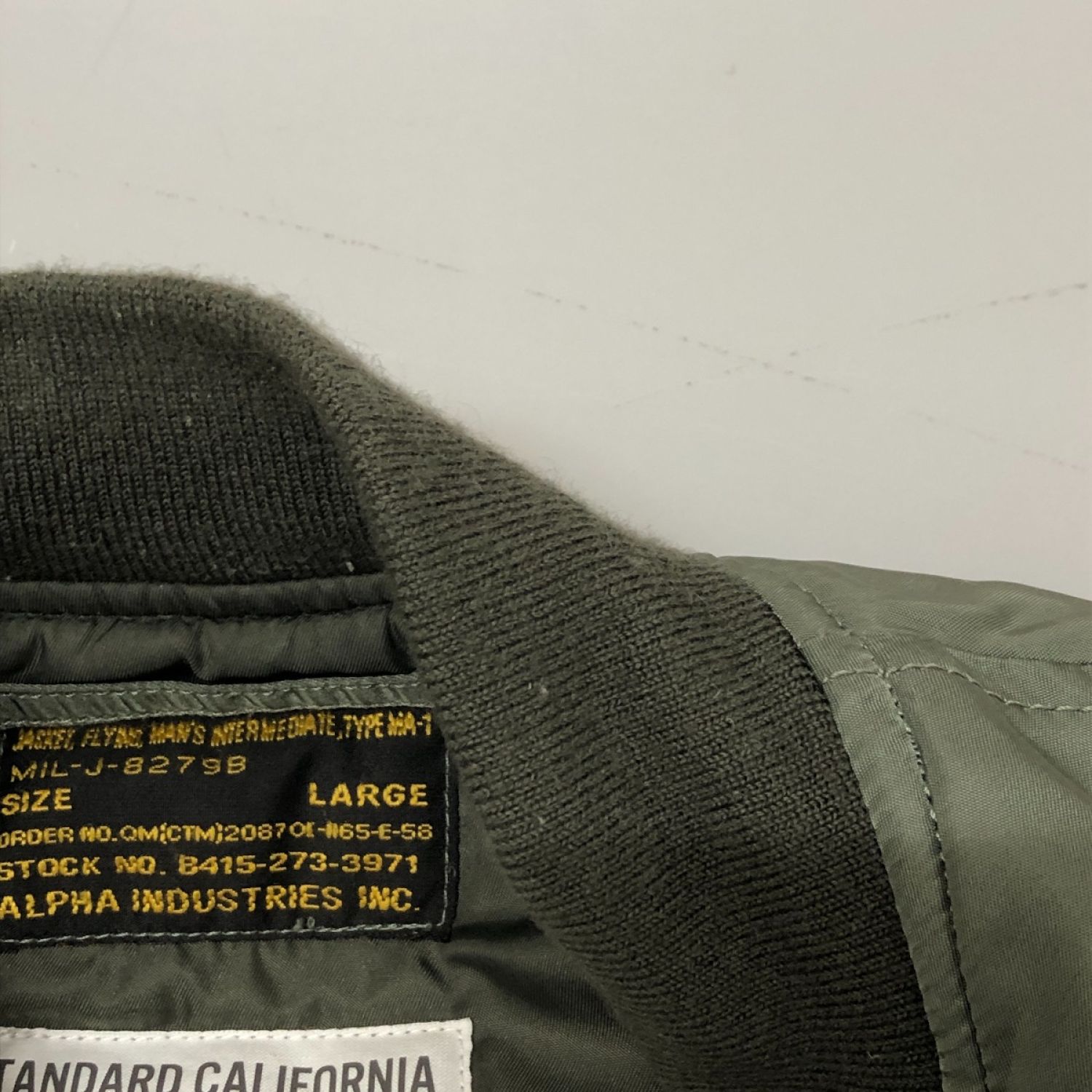 ALPHA アルファ ジャケット MA-1ジャケット SIZE L STANDARD CALIFORNIAコラボ キムタク着用モデル mil-j-82798 オリーブ