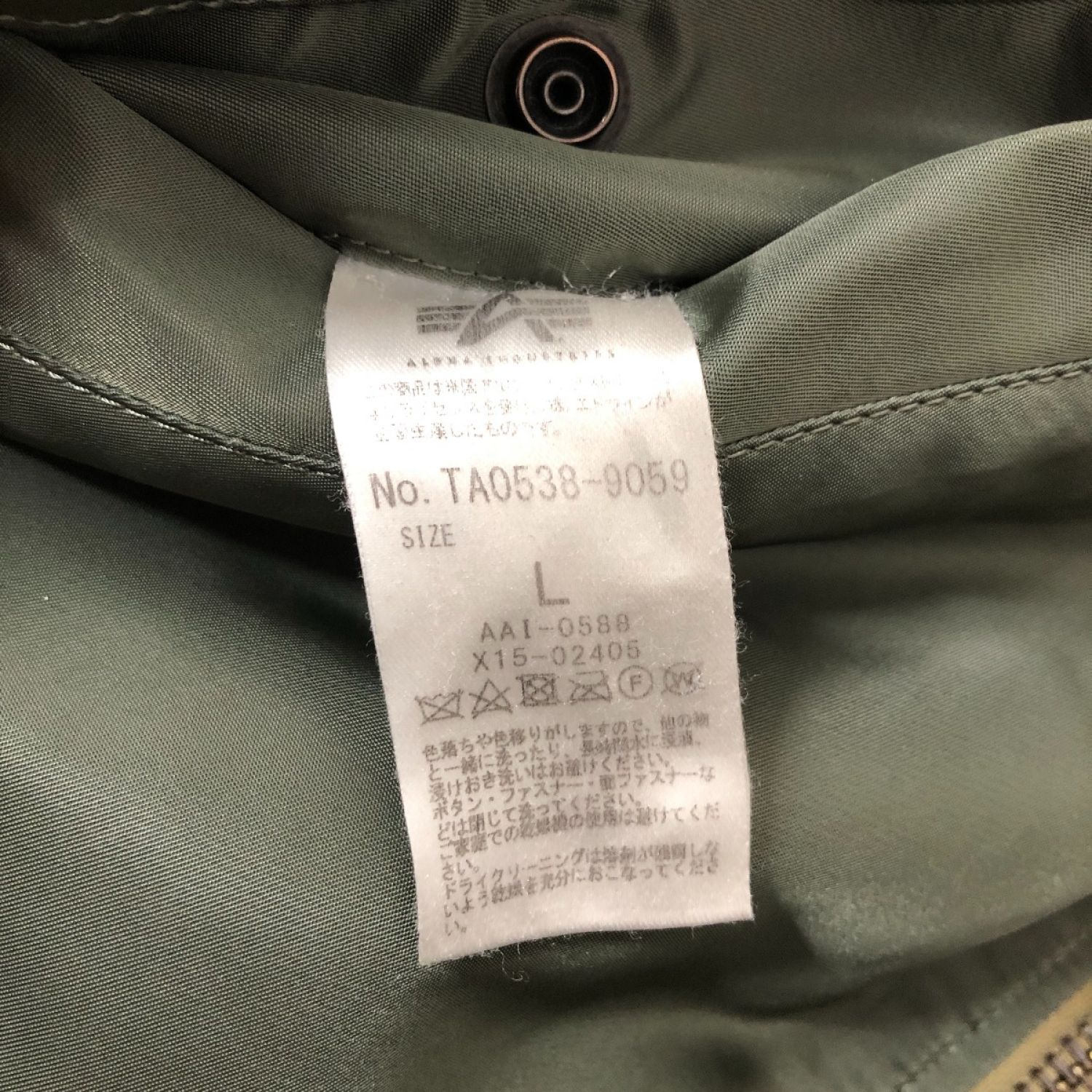 【商品名】中古 ALPHA アルファ ジャケット MA-1ジャケット SIZE L STANDARD CALIFORNIAコラボ キムタク着用モデル mil-j-82798 オリーブ Cランク
