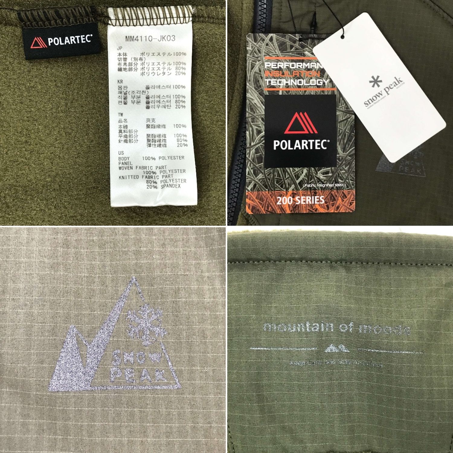 snowpeak スノーピーク フリースジャケット MM4110-JK03030L オリーブ Mサイズ